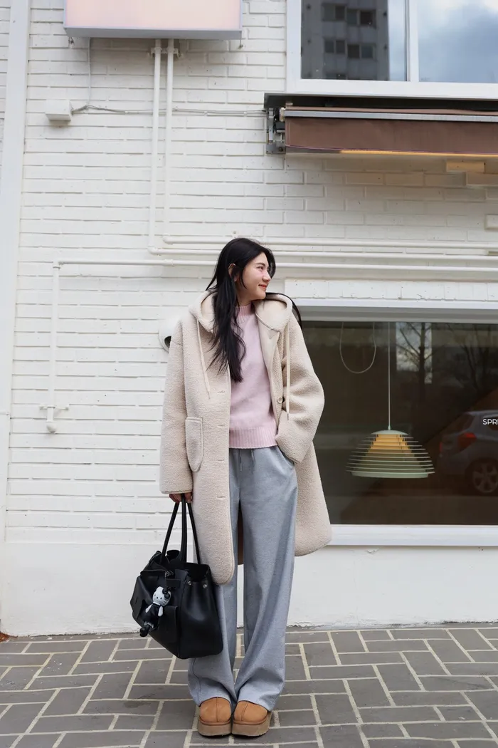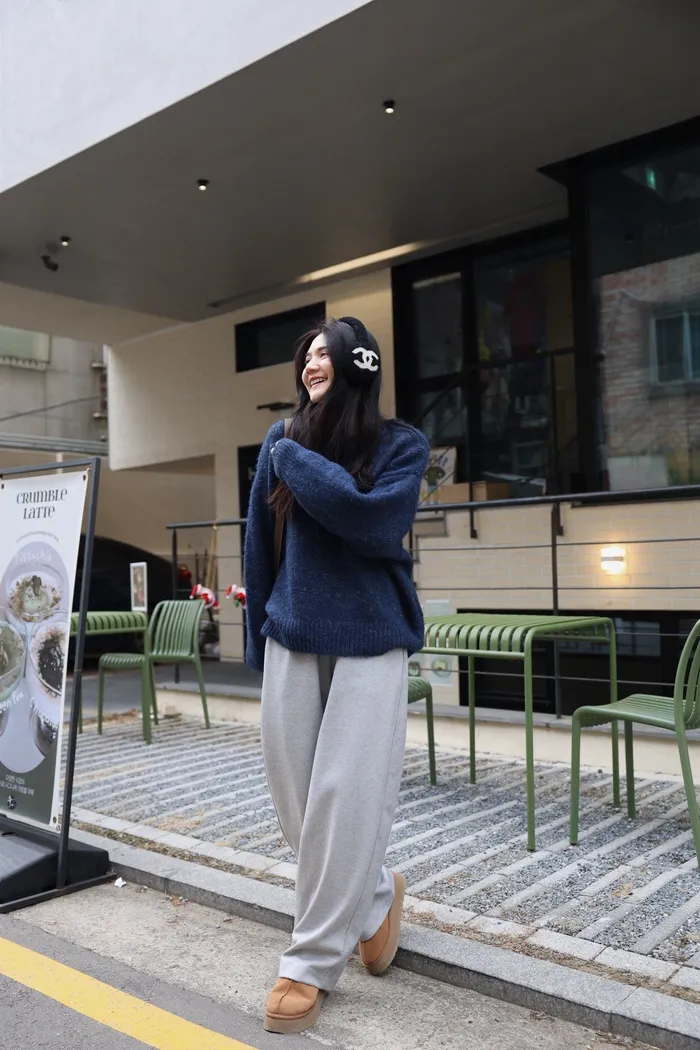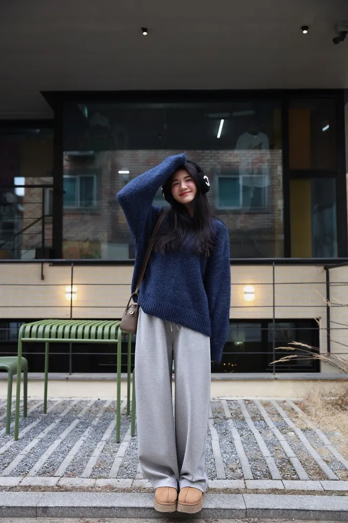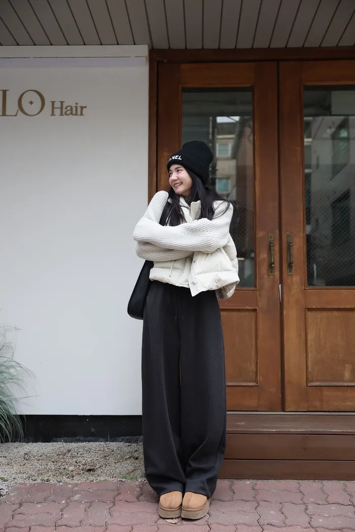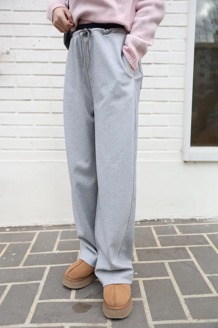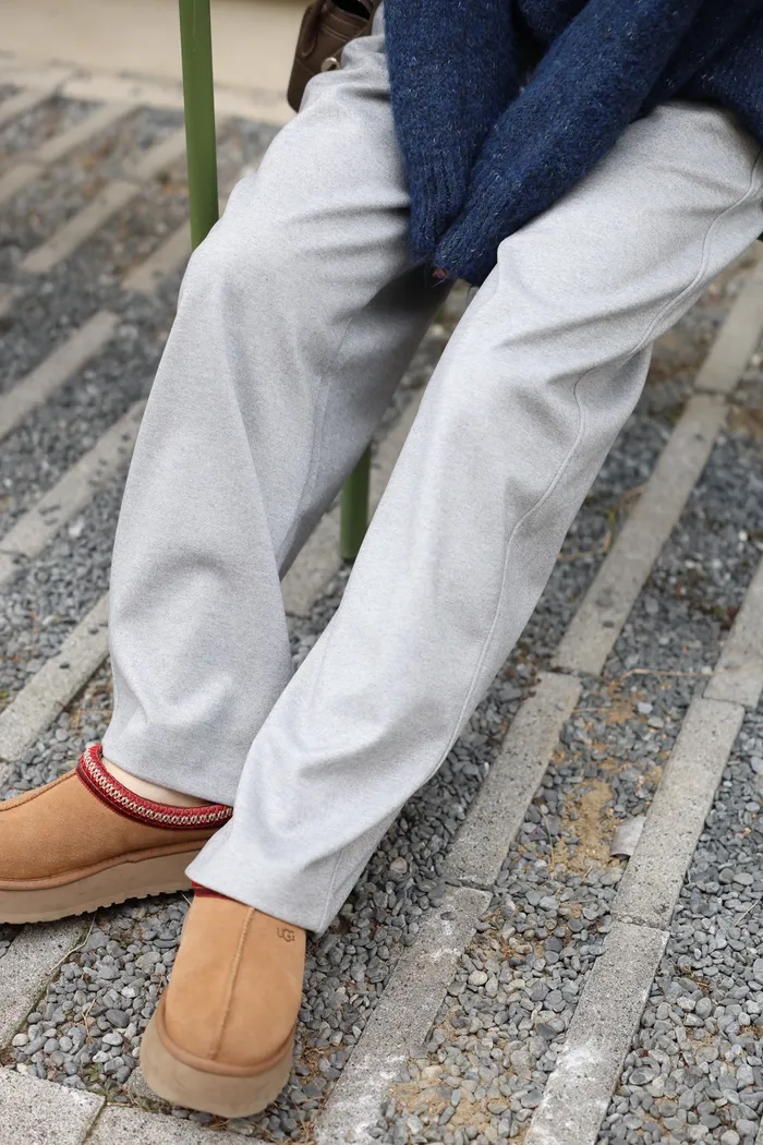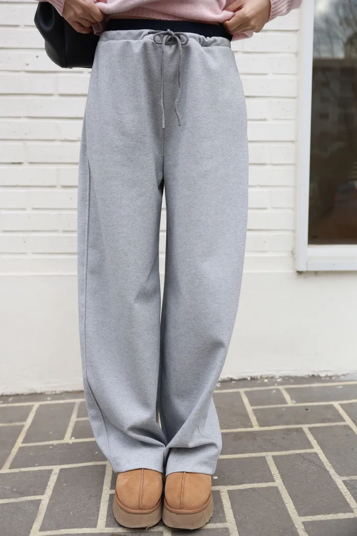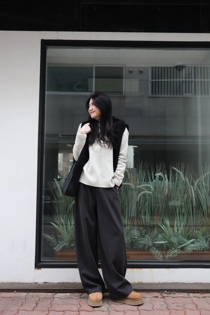 JA34 帥氣撞色腰頭拼接羊毛寬褲(深灰/淺灰)