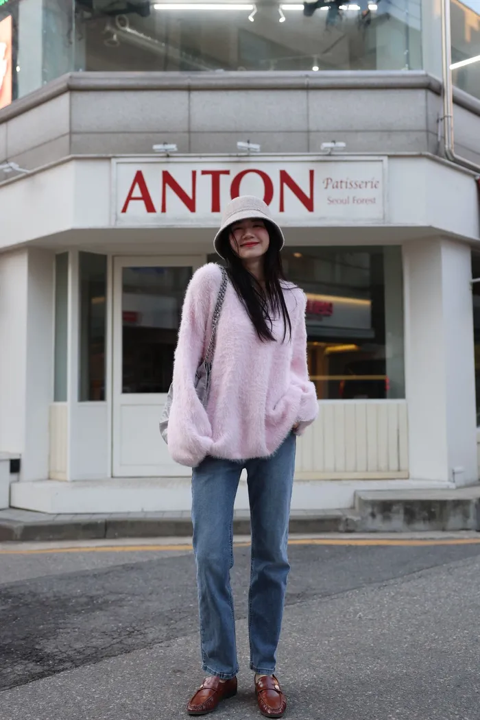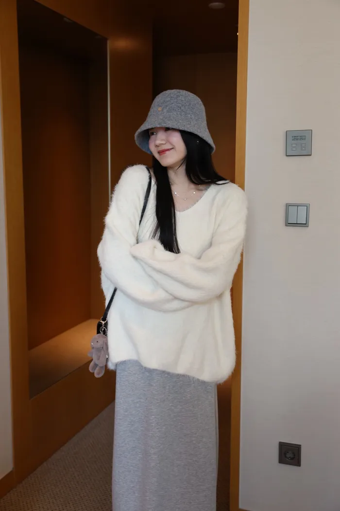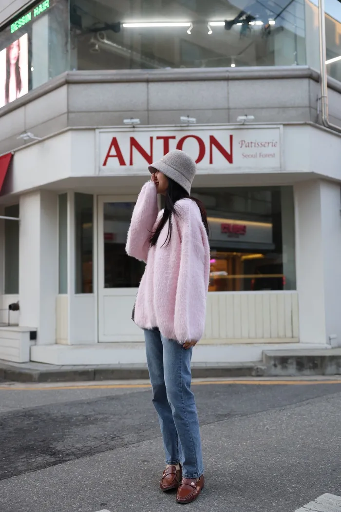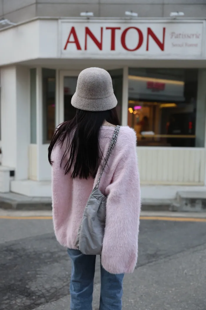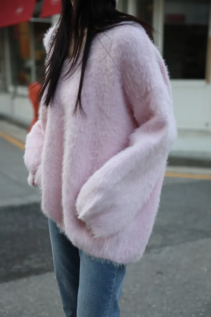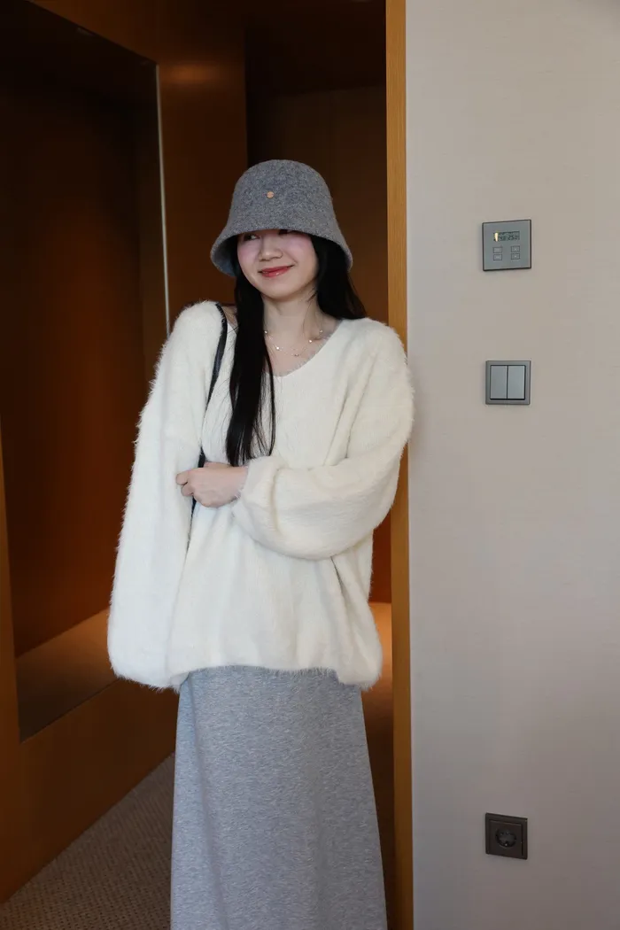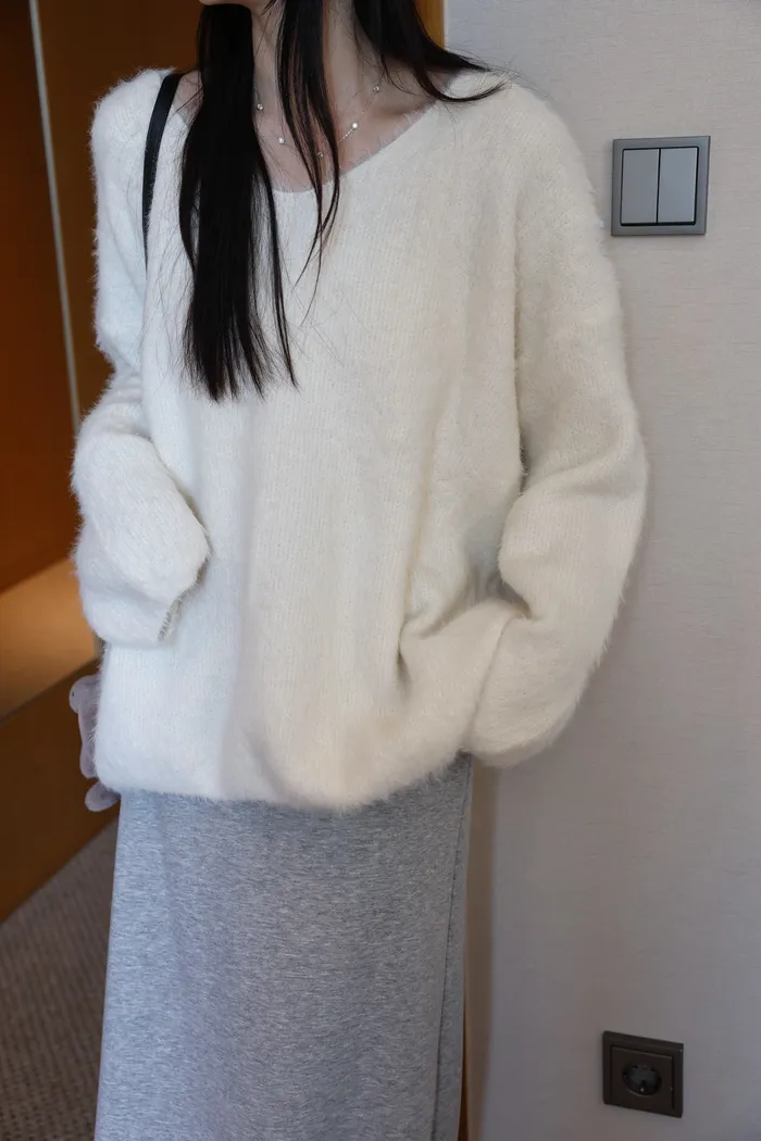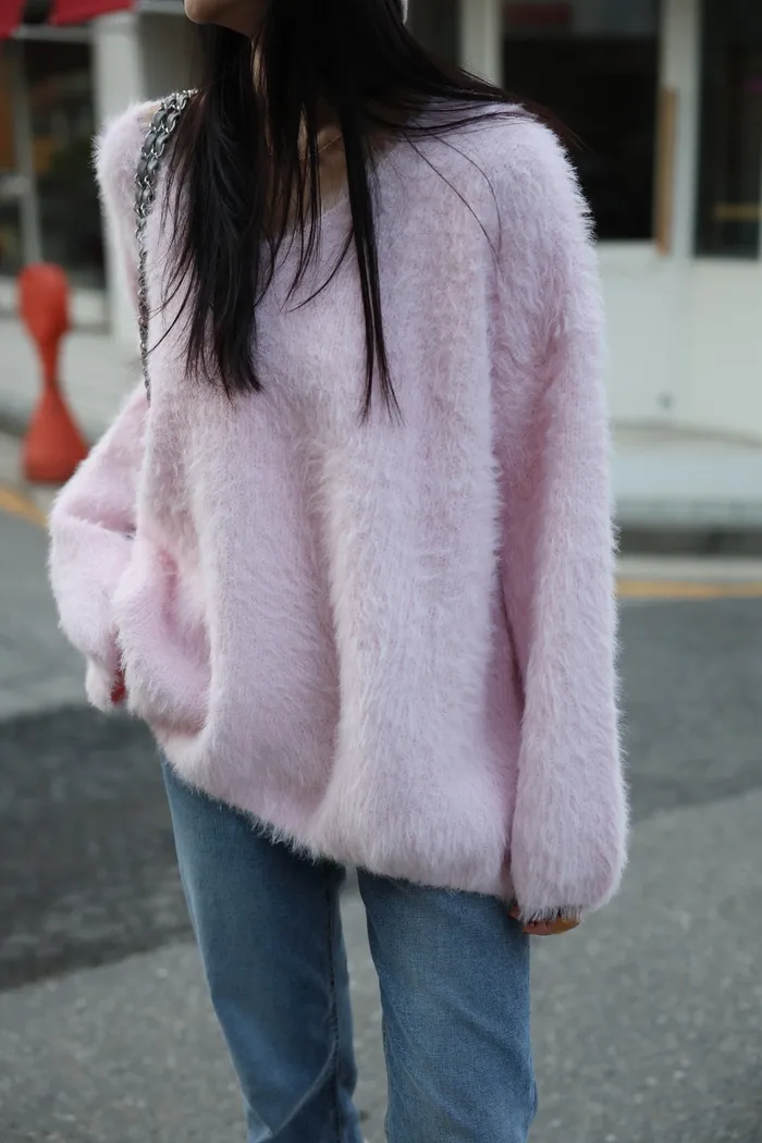 JA37 溫柔系大V領慵懶針織上衣(米白/粉/墨)