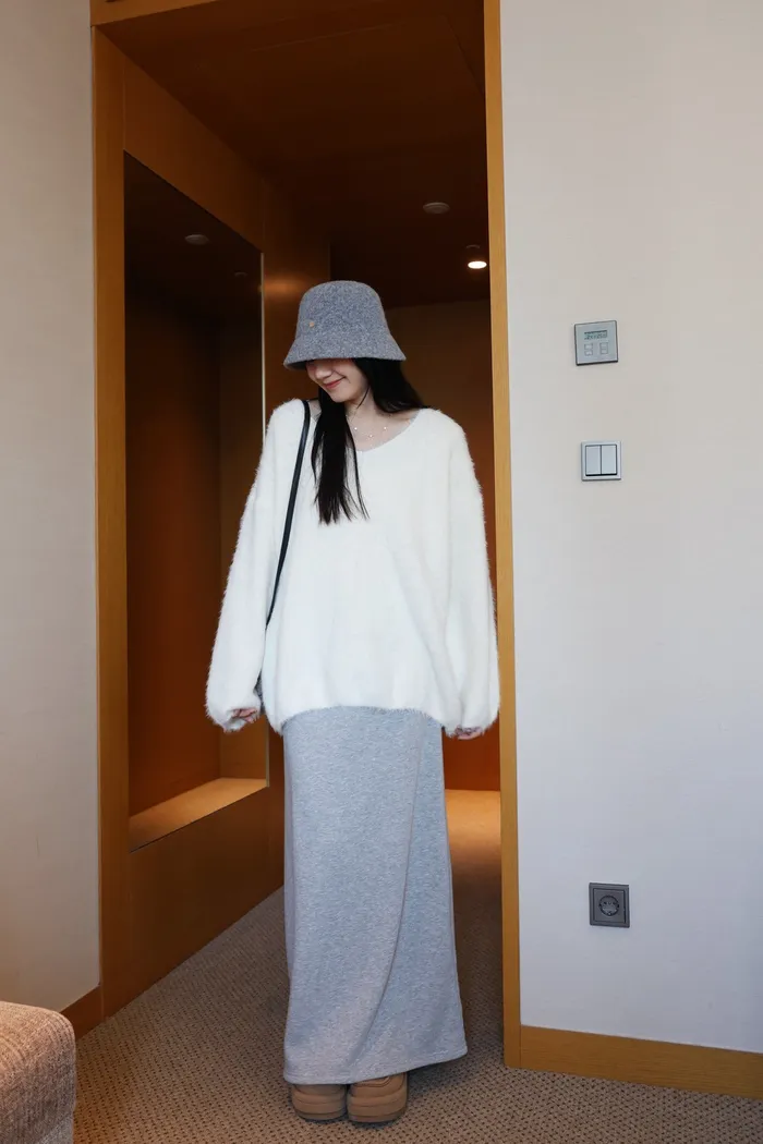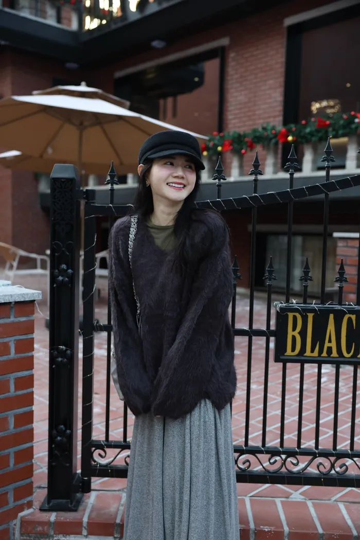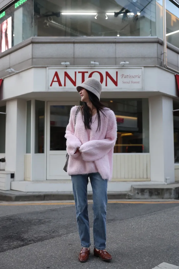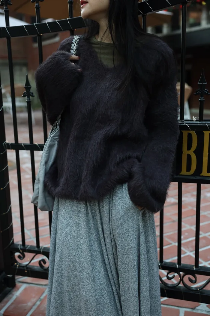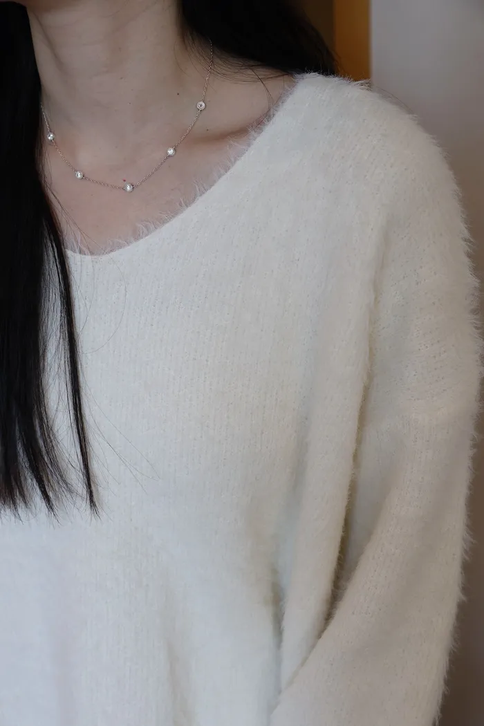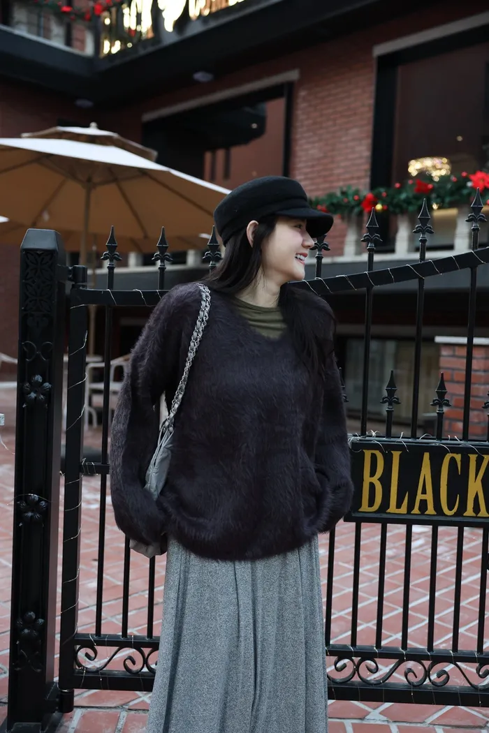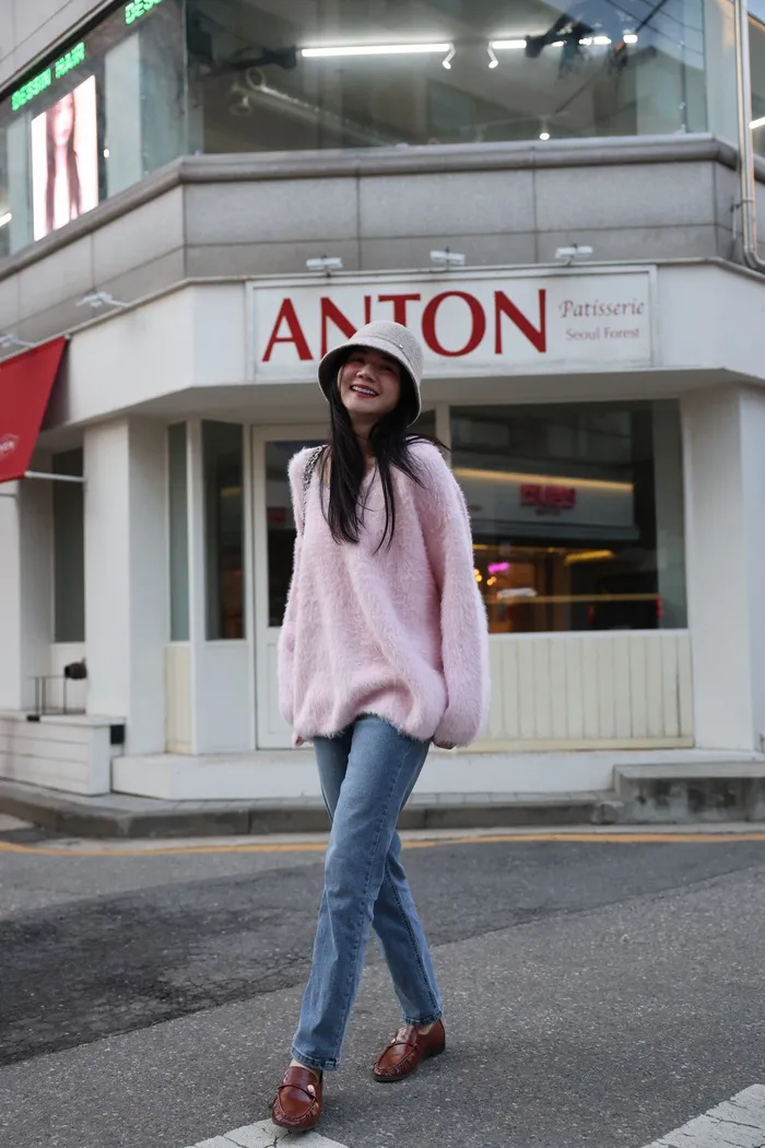 JA37 溫柔系大V領慵懶針織上衣(米白/粉/墨)
