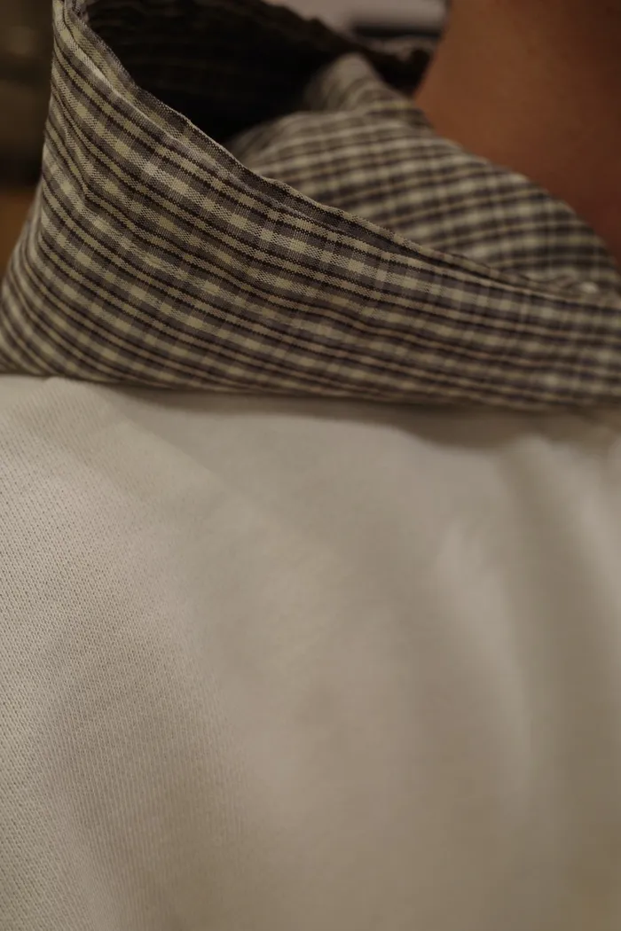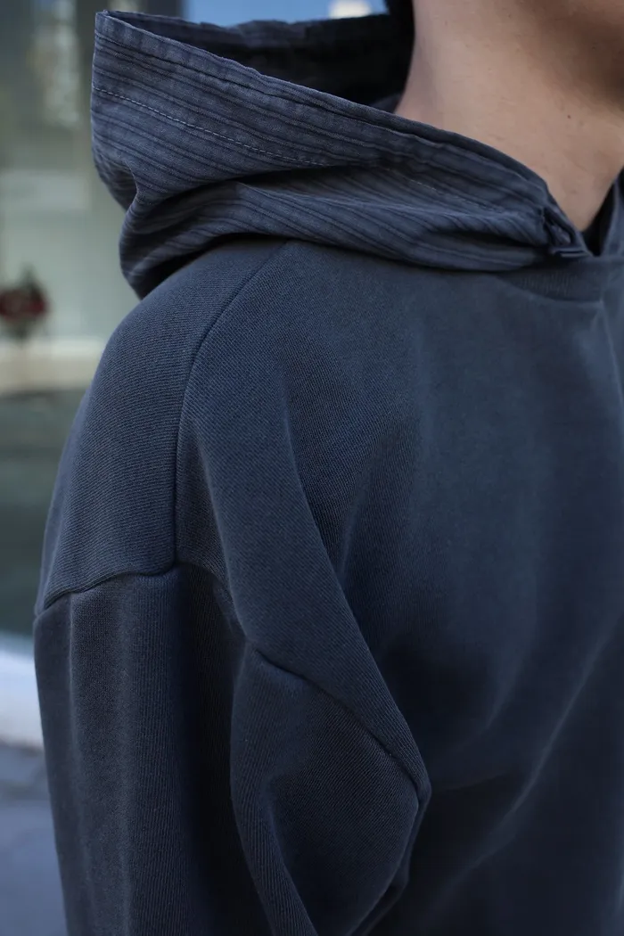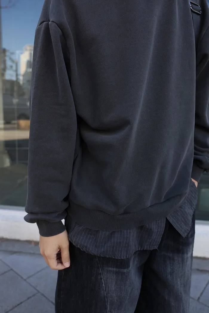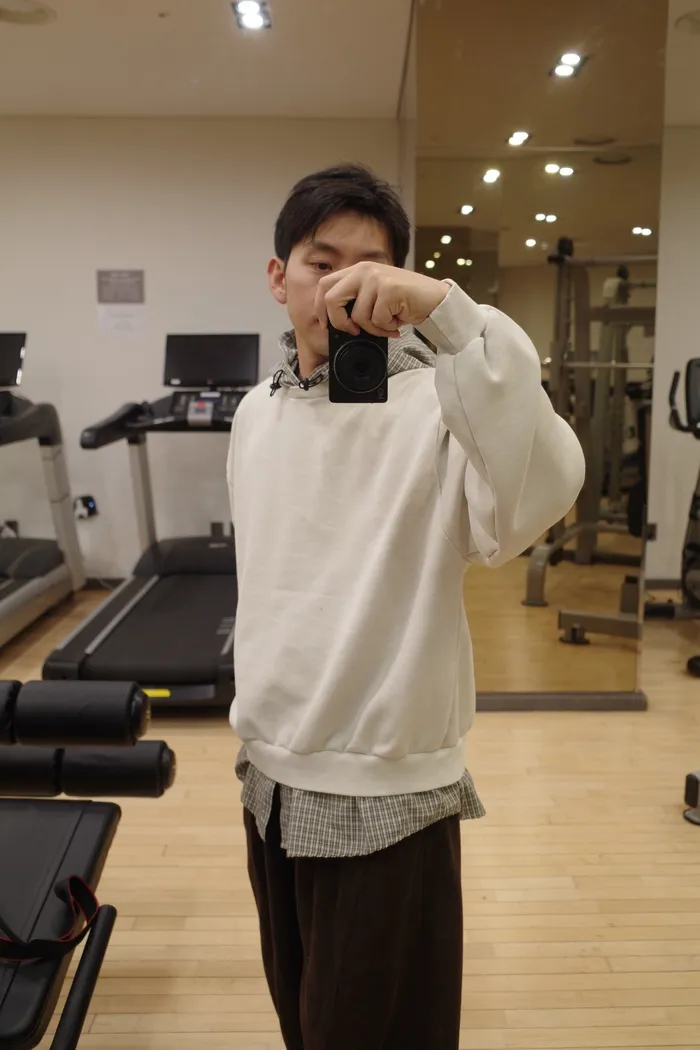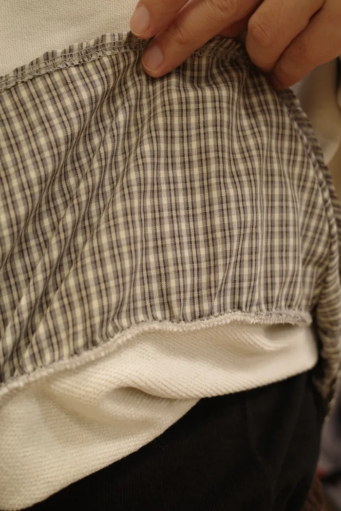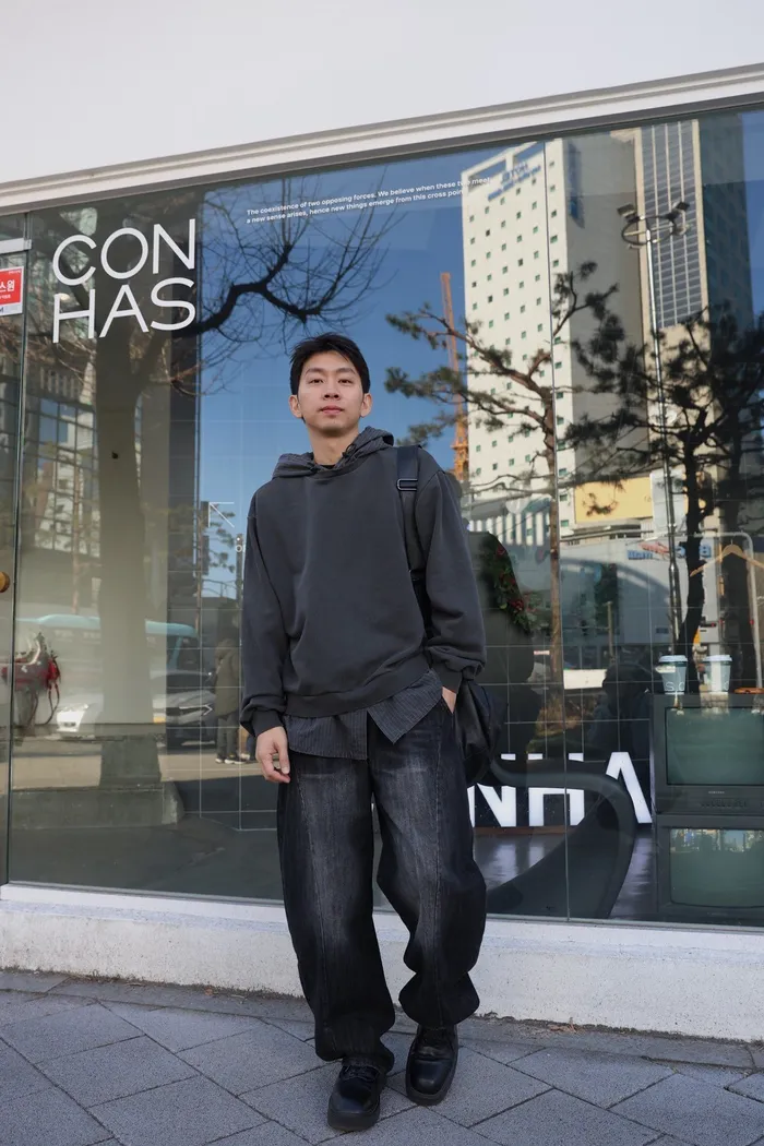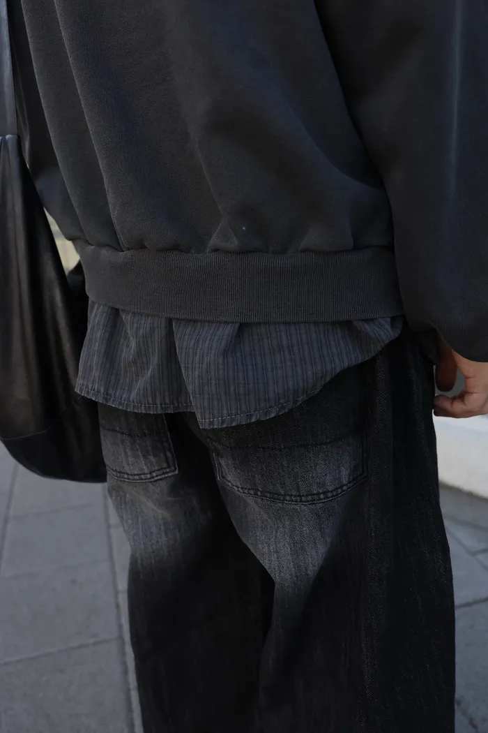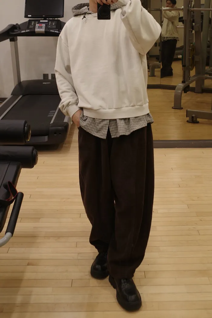 JA44 男裝!設計感異材質假兩件連帽大學T(杏/墨)