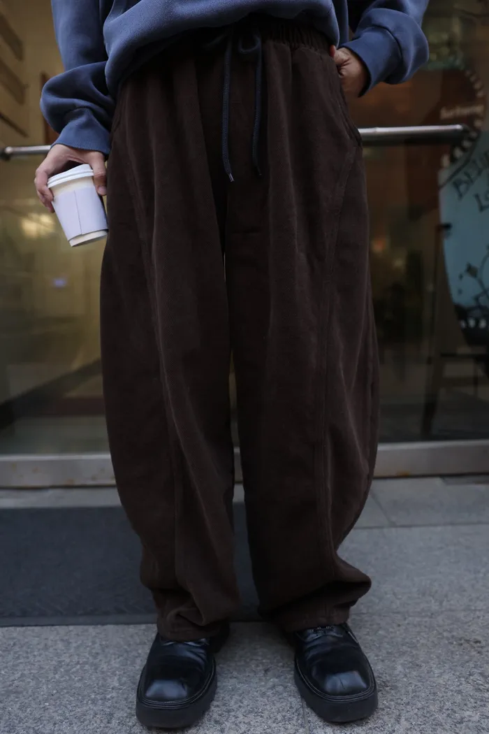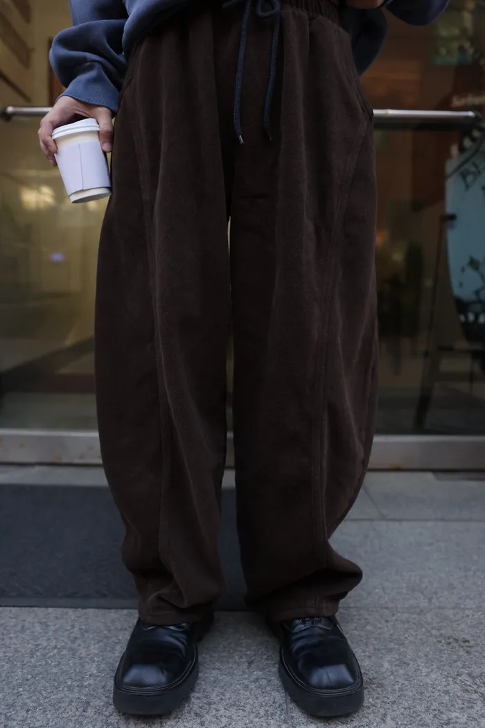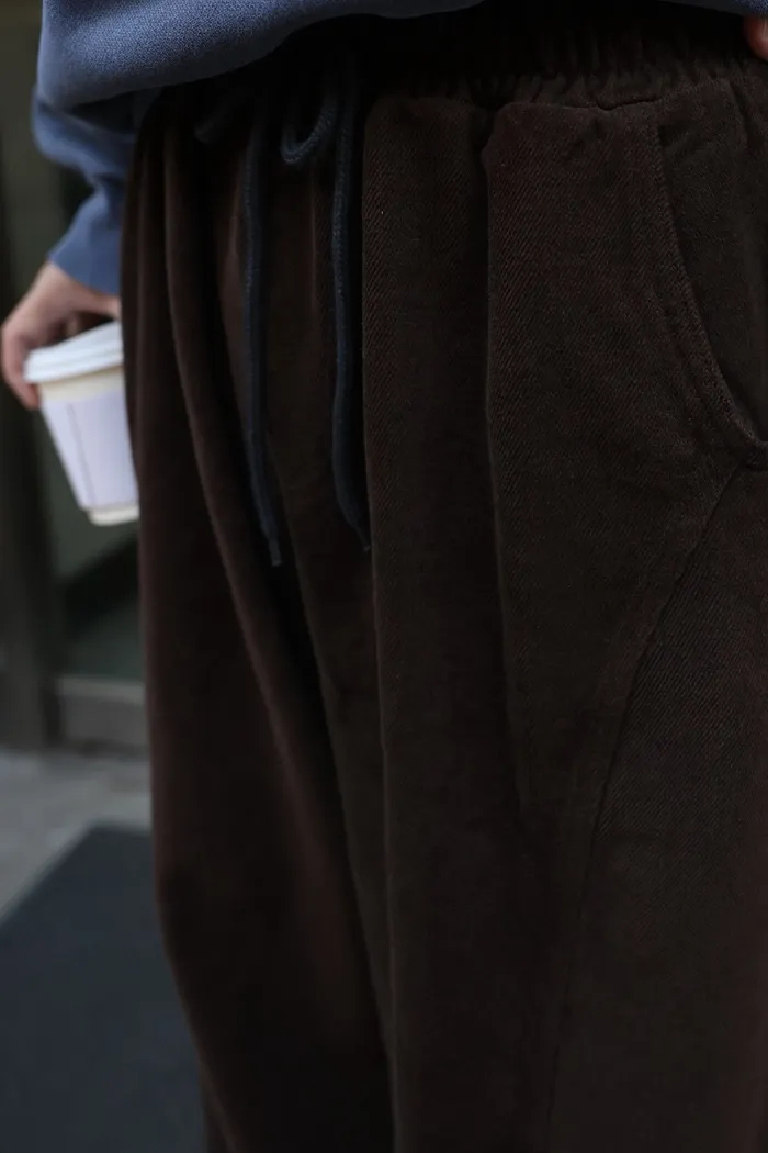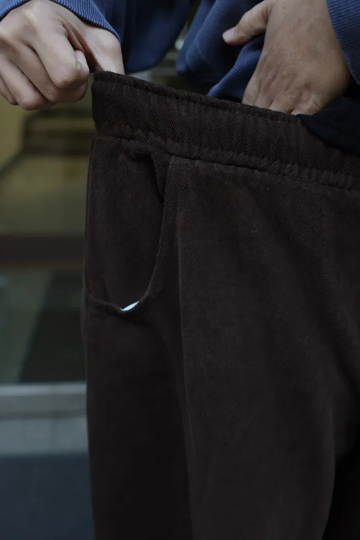 JA46 男裝!全鬆緊螺紋咖色內刷毛彎刀褲
