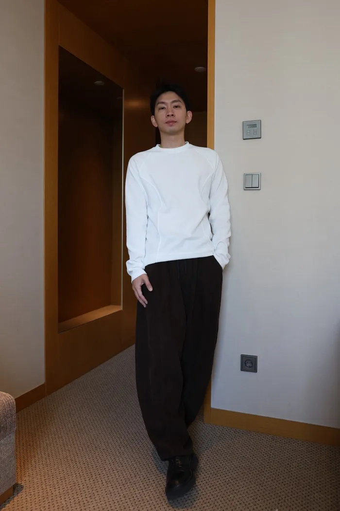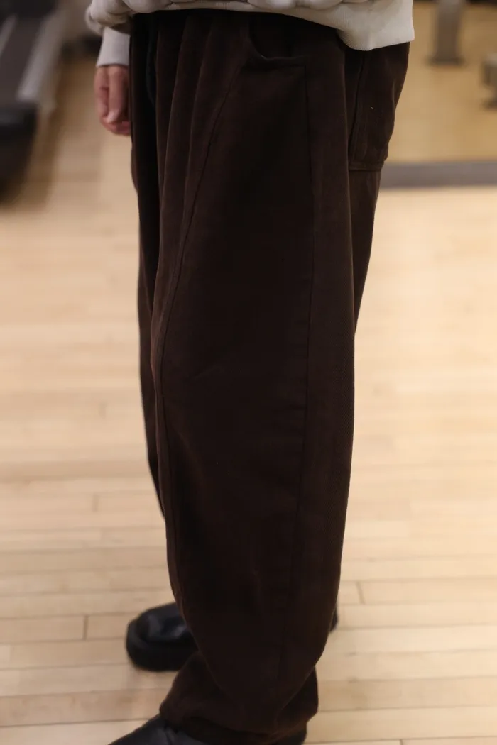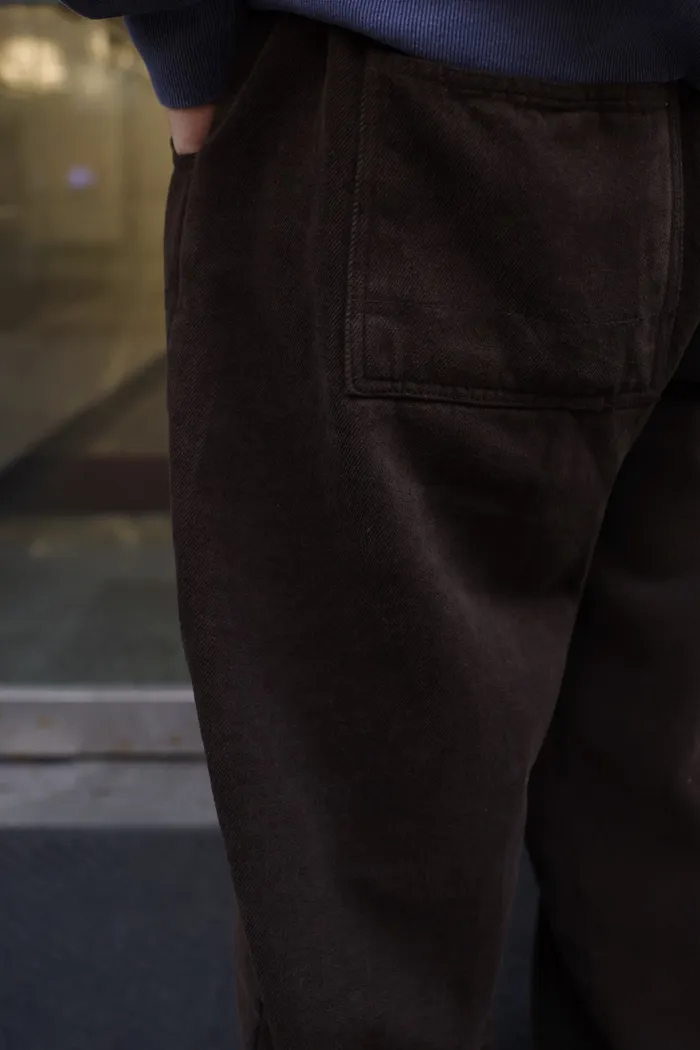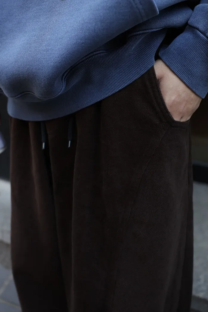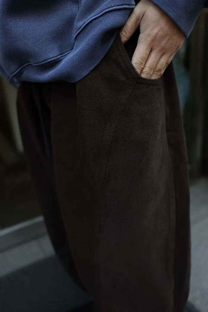 JA46 男裝!全鬆緊螺紋咖色內刷毛彎刀褲