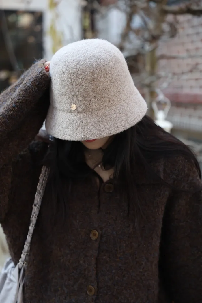 JA49 高質感金釦羊毛漁夫帽(杏/灰/黑)