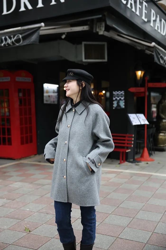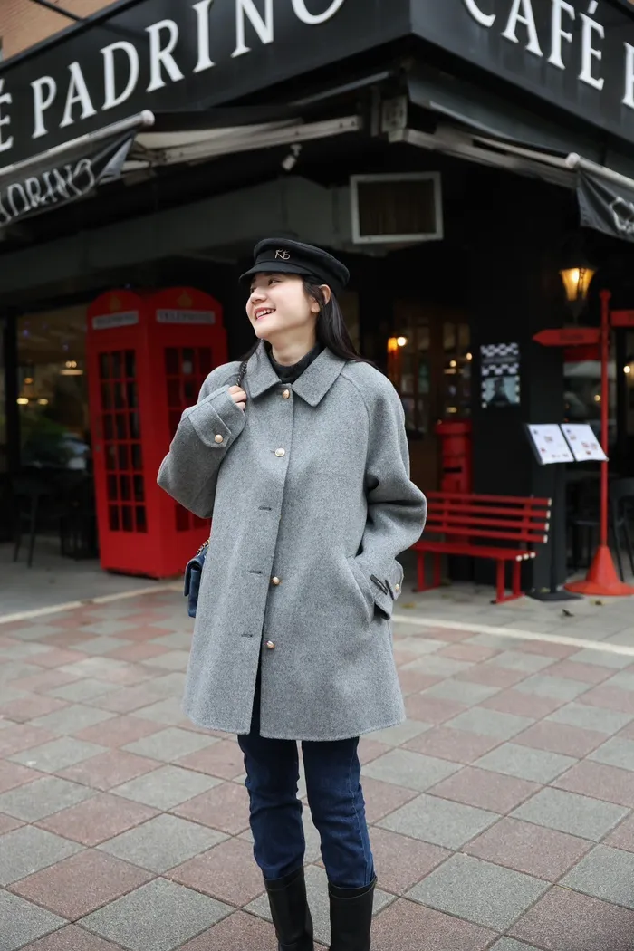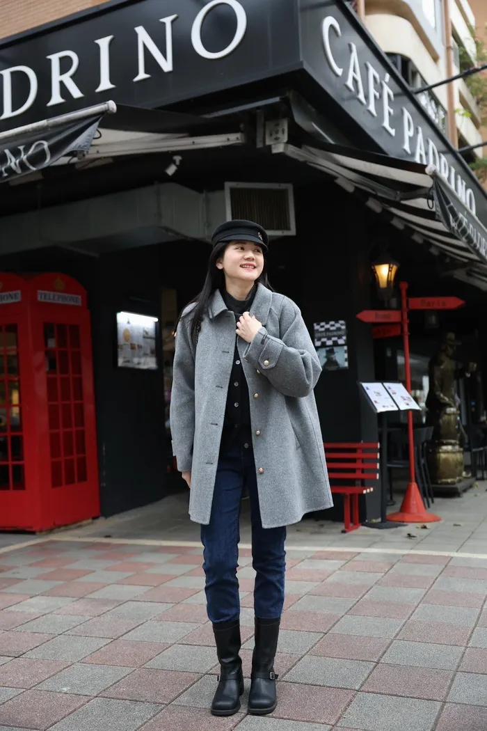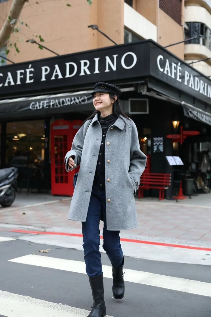 JF01 現貨!皇家海軍金釦羊毛鋪棉手工大衣(駝/灰)