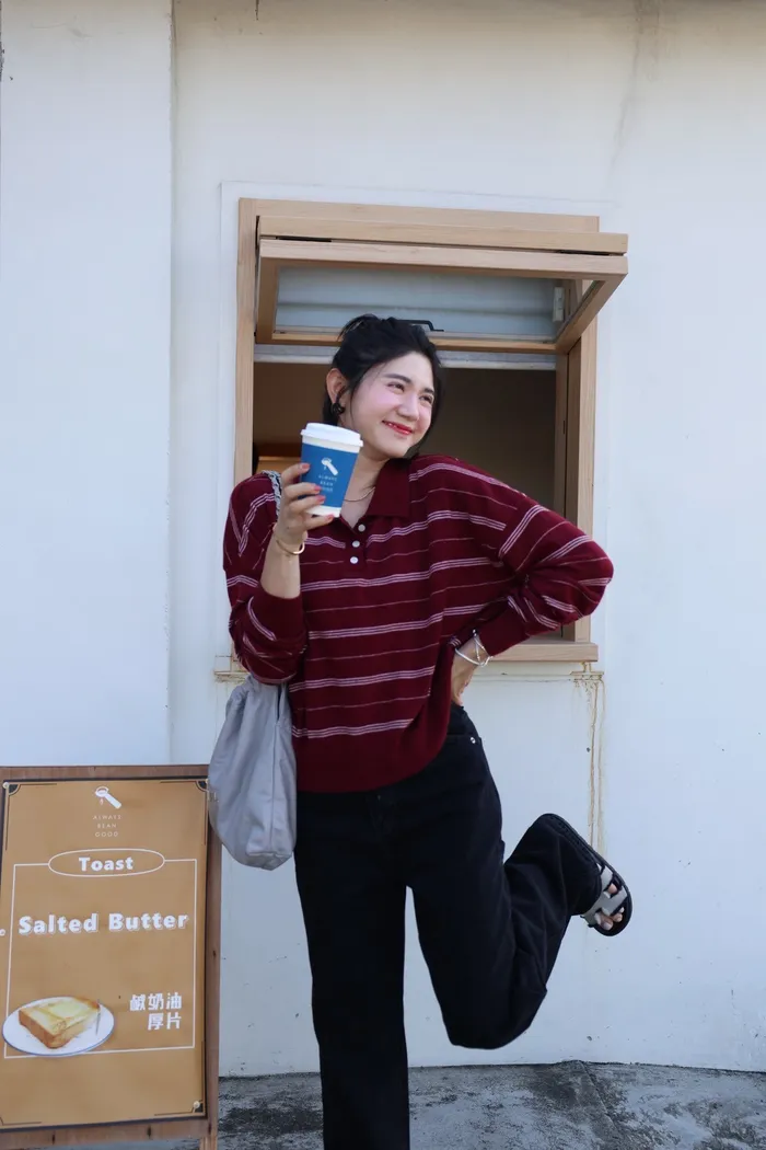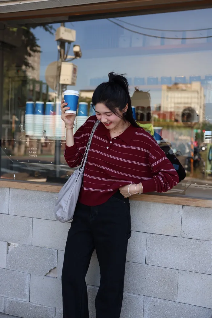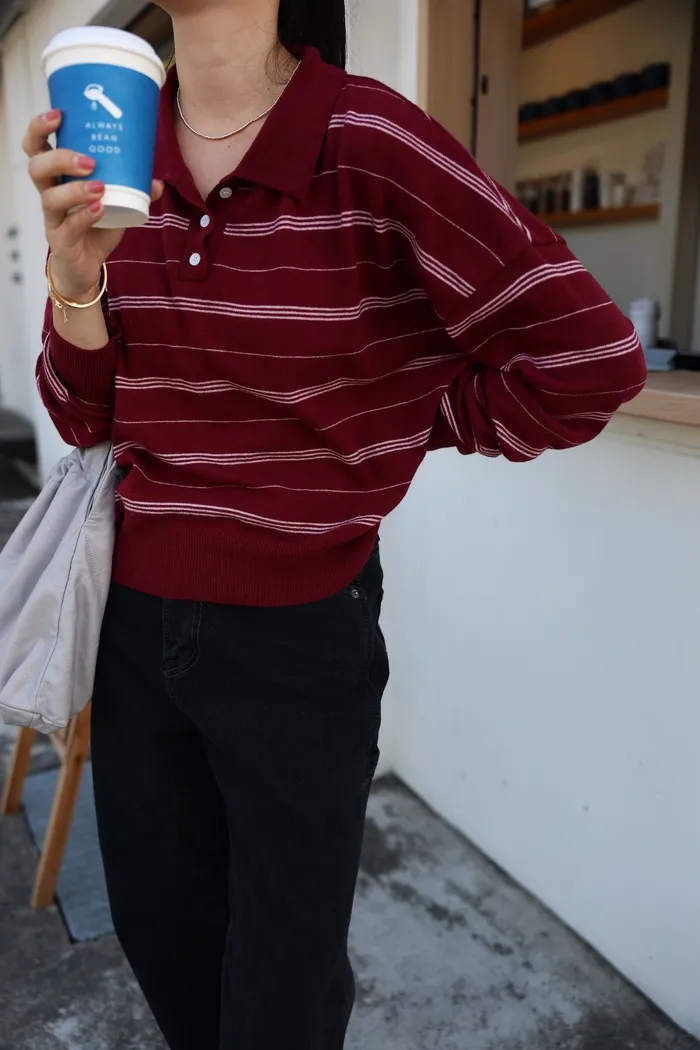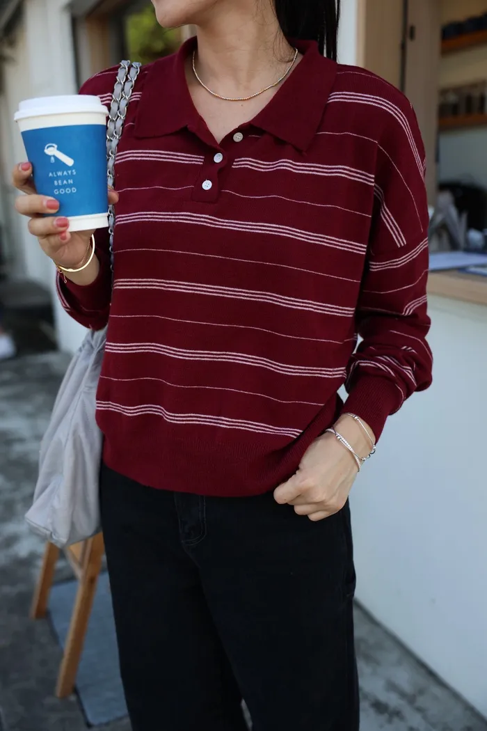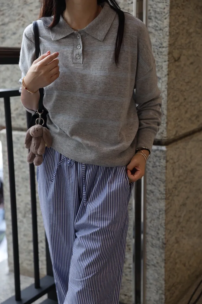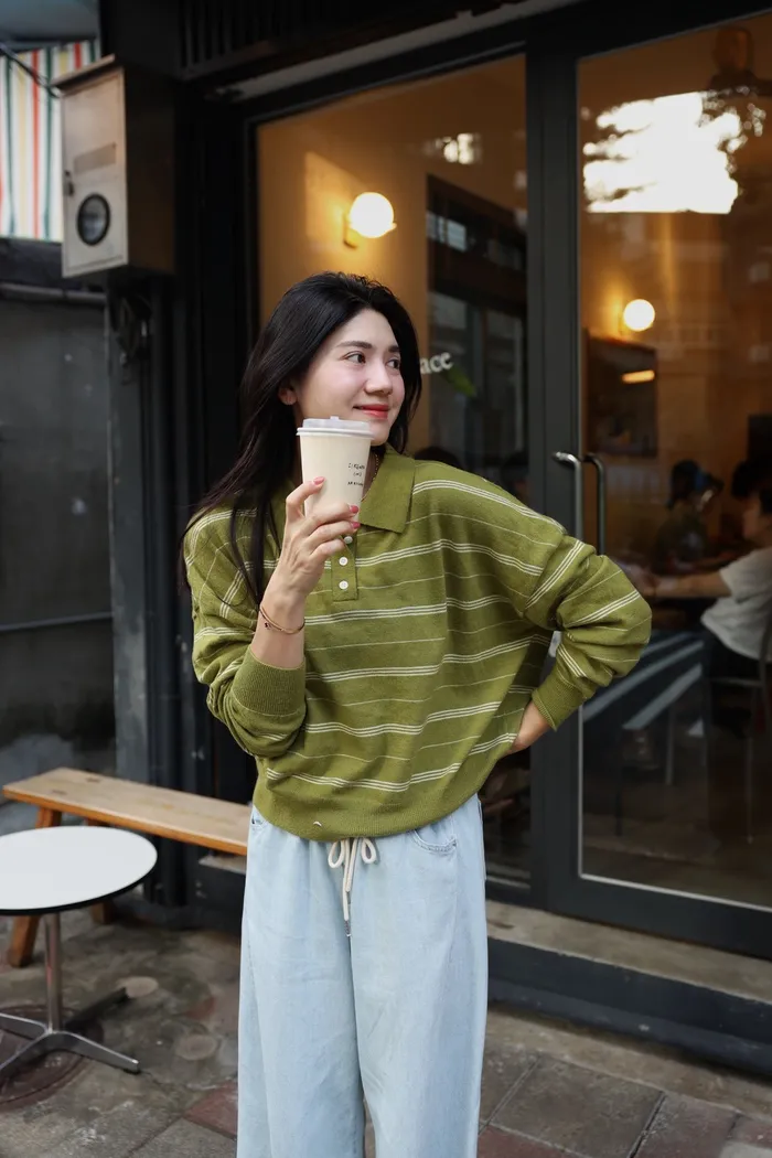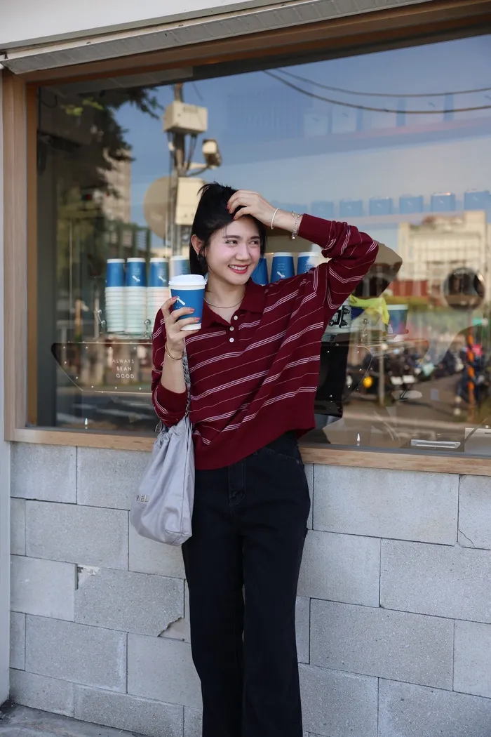 MM03 親膚羊絨撞色條紋半排釦毛衣(綠/灰/紅)