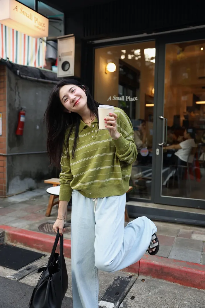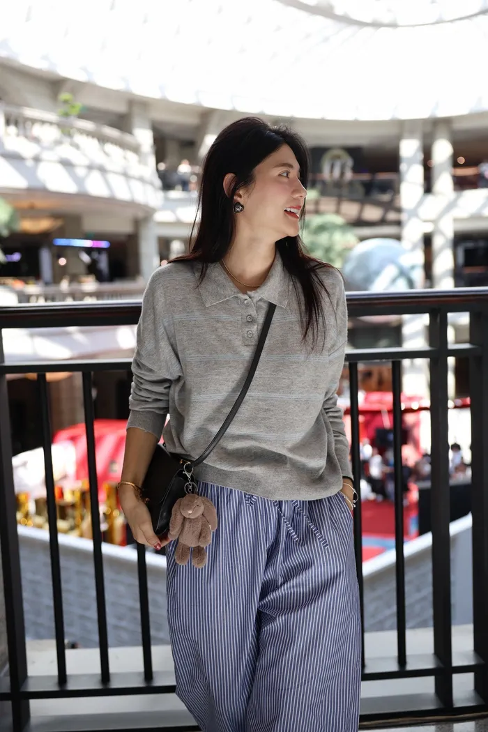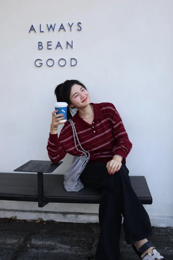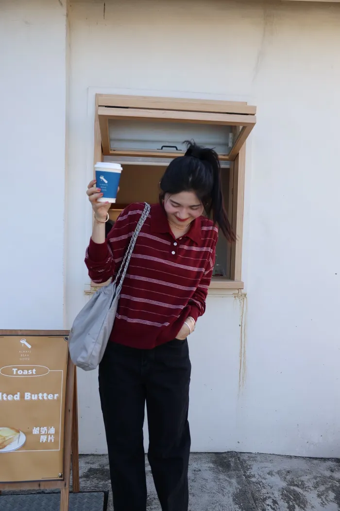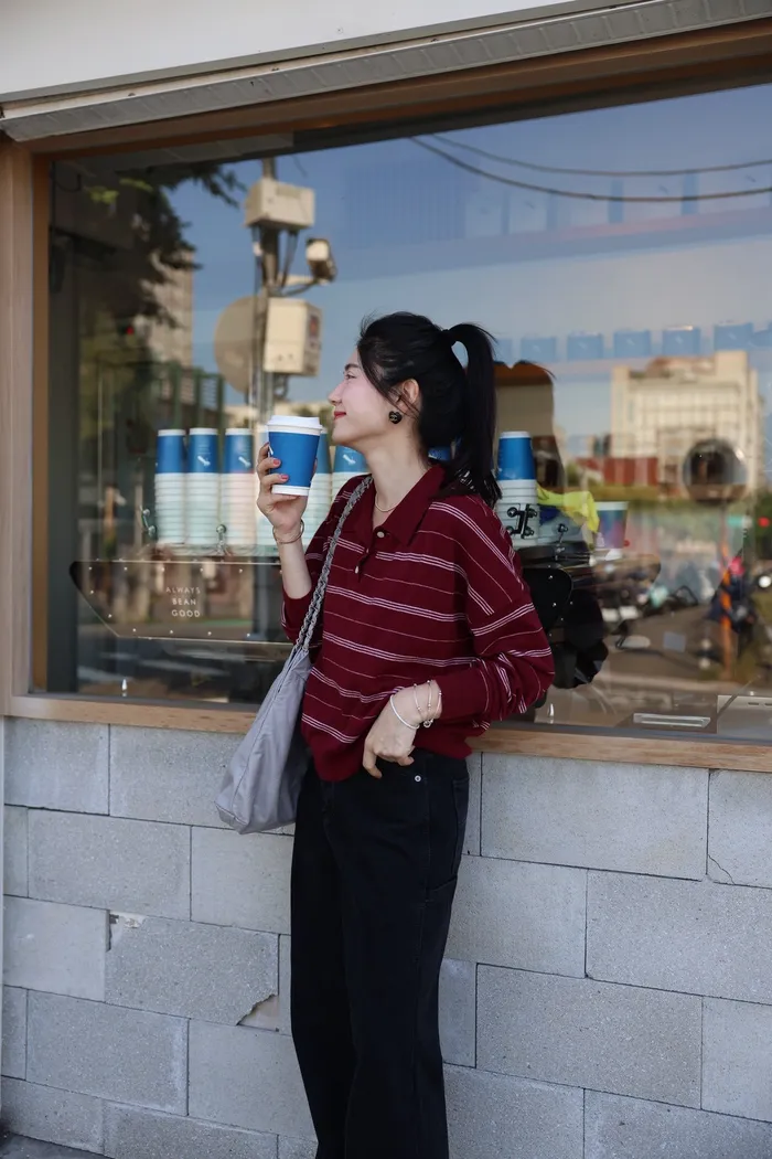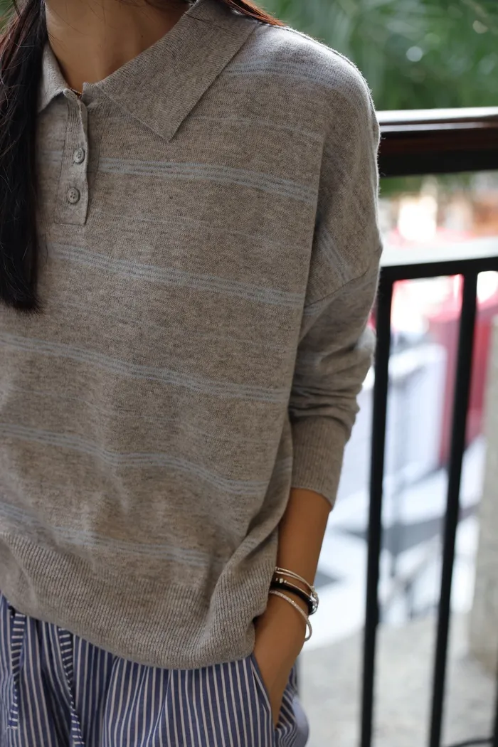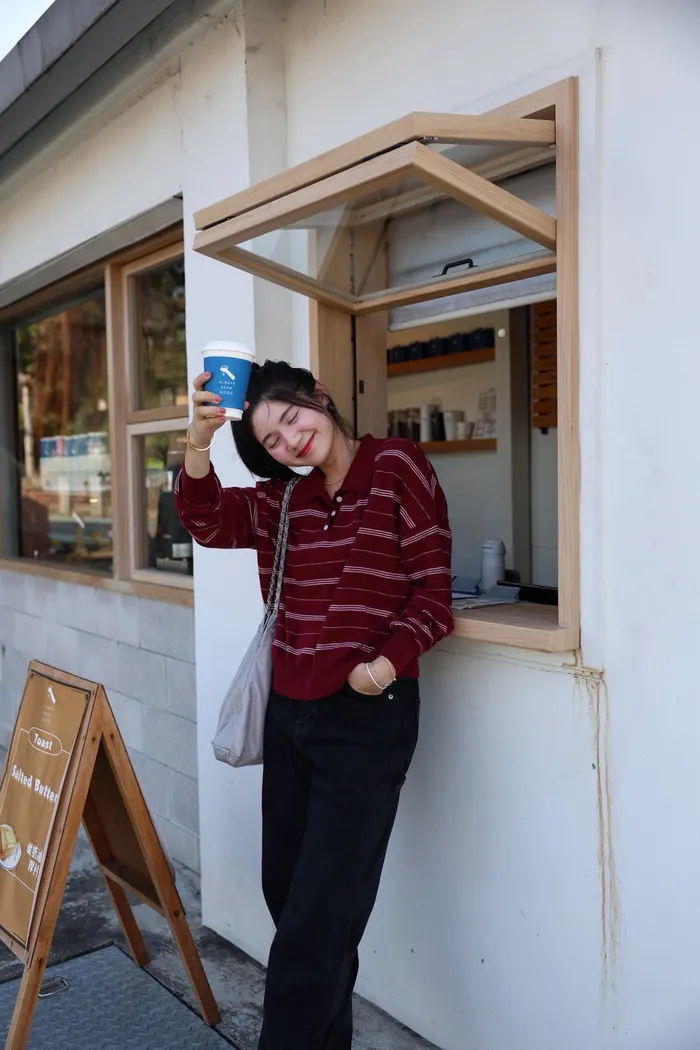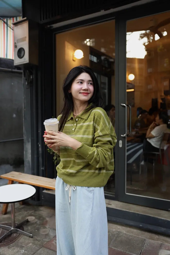 MM03 親膚羊絨撞色條紋半排釦毛衣(綠/灰/紅)