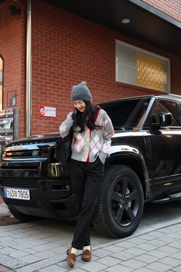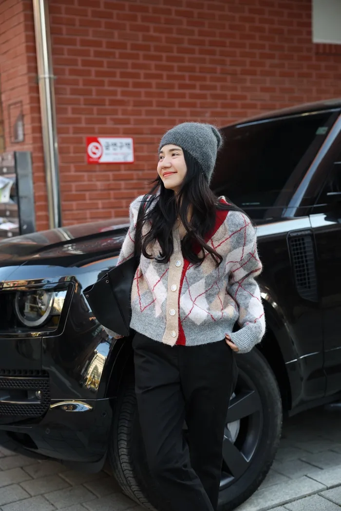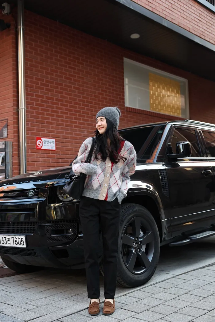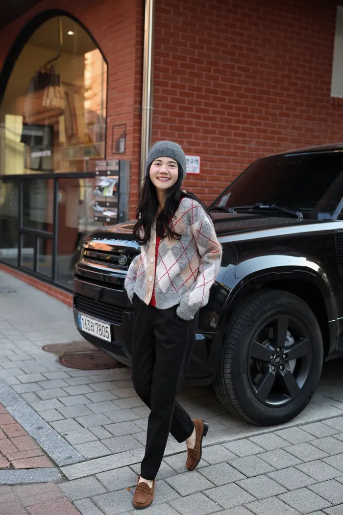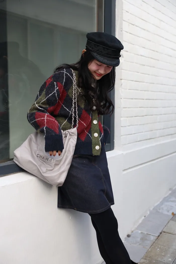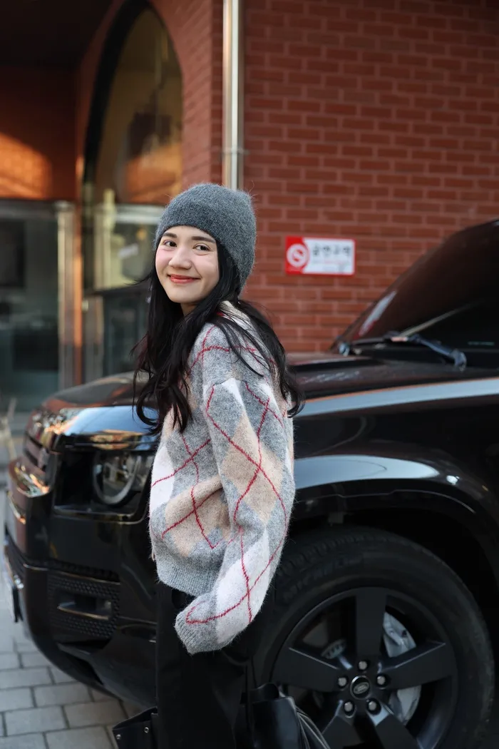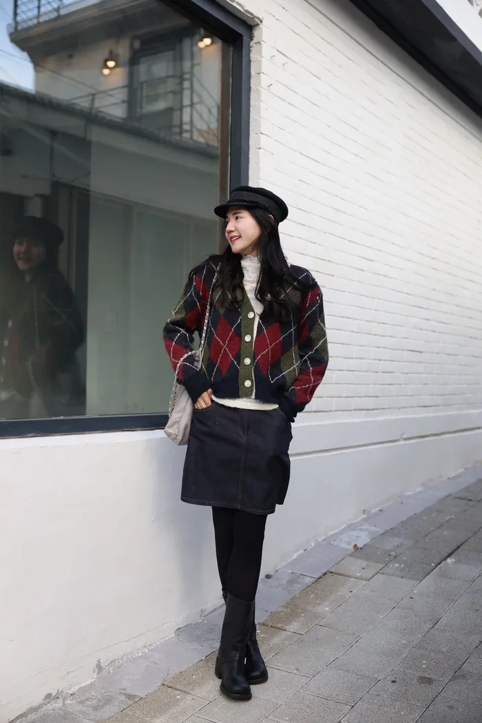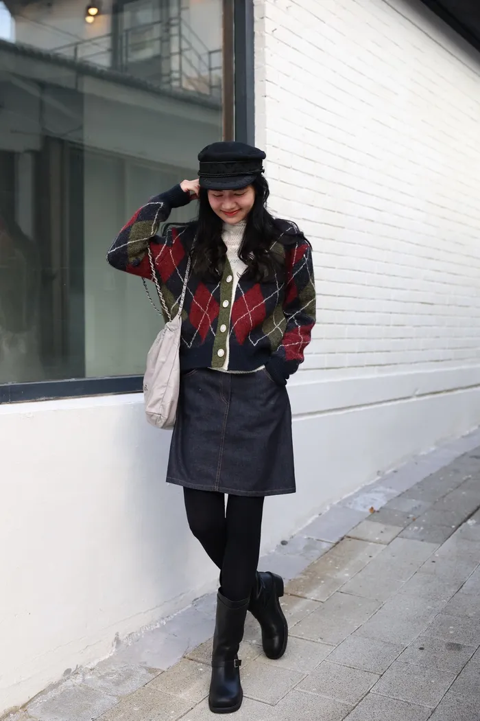 NV03 菱格紋開襟撞色針織外罩衫(紅灰/綠藍)