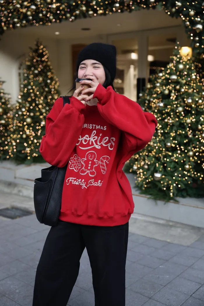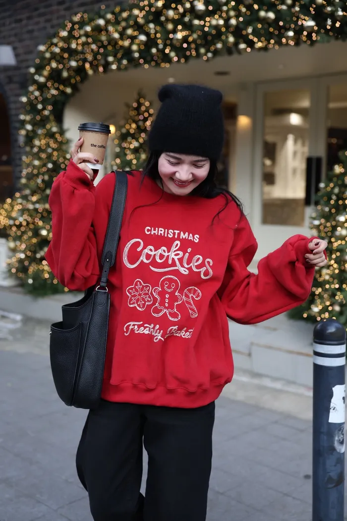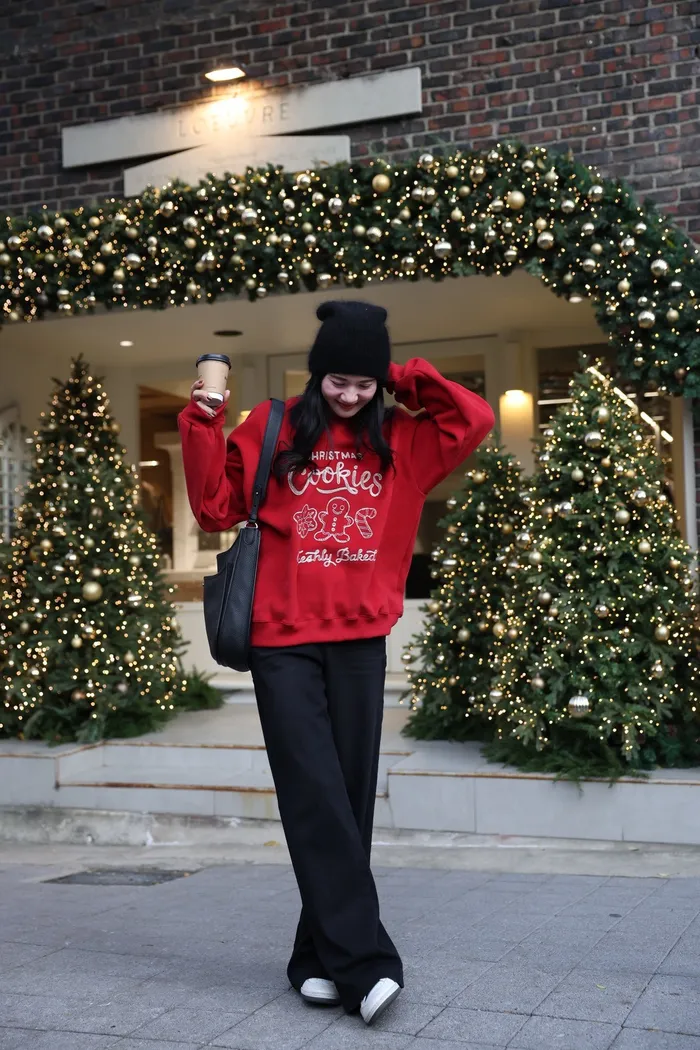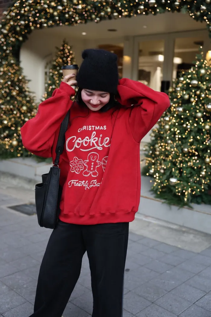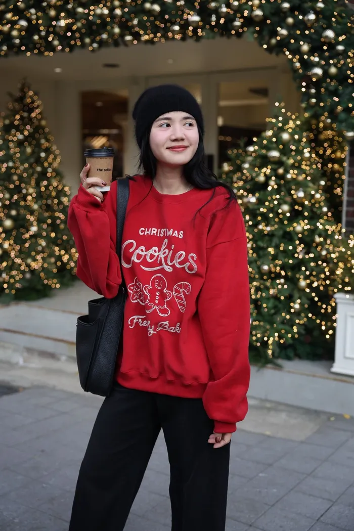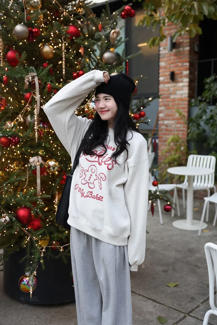 NV11 可可愛愛薑餅人聖誕大學T(杏/紅)
