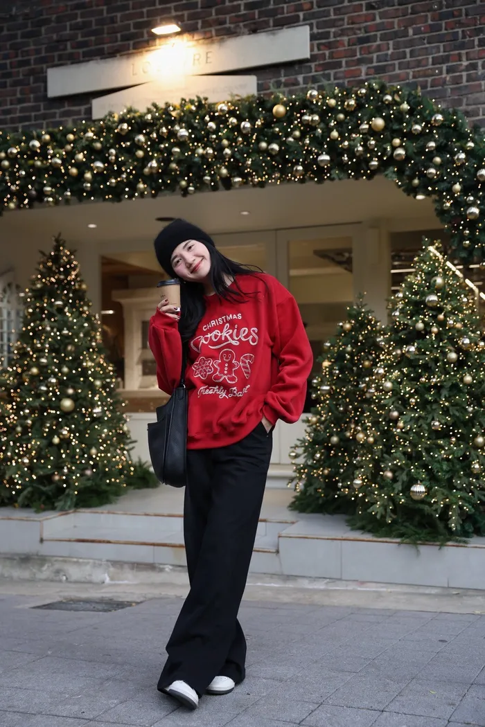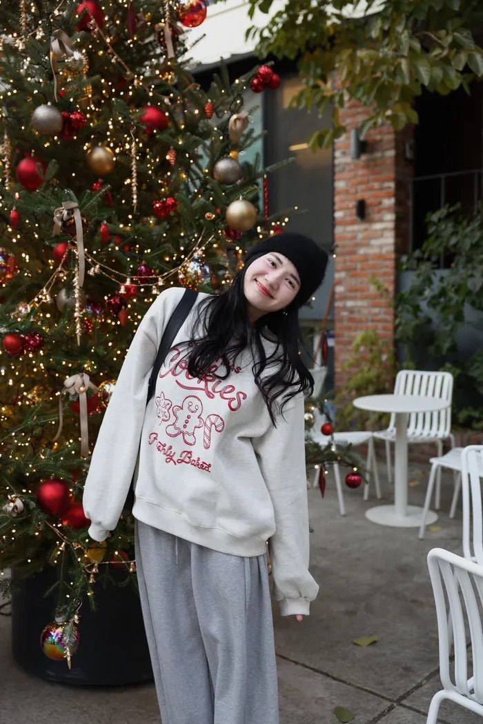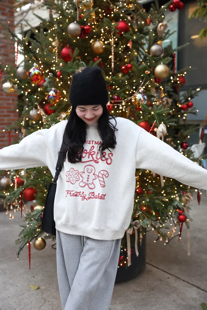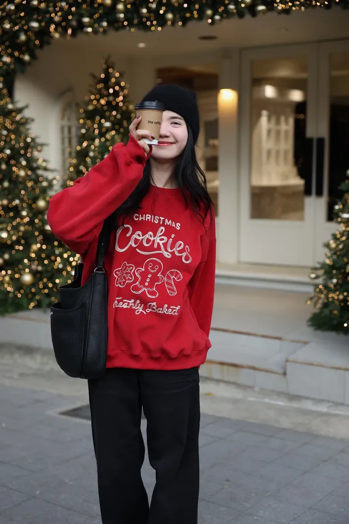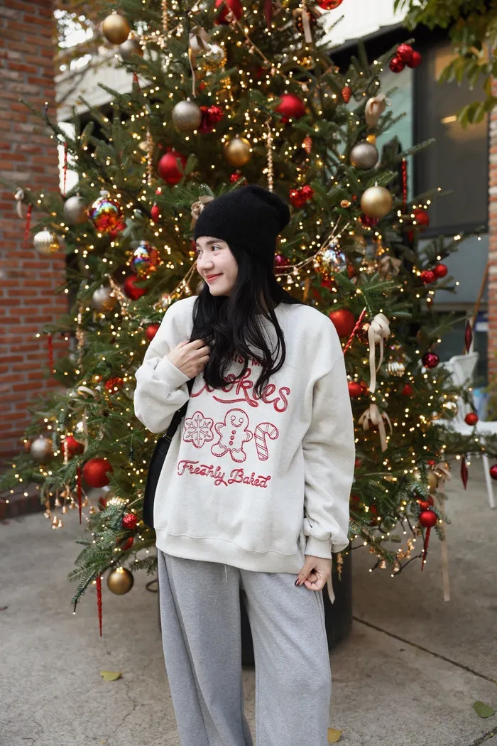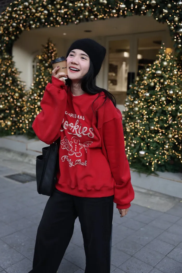 NV11 可可愛愛薑餅人聖誕大學T(杏/紅)