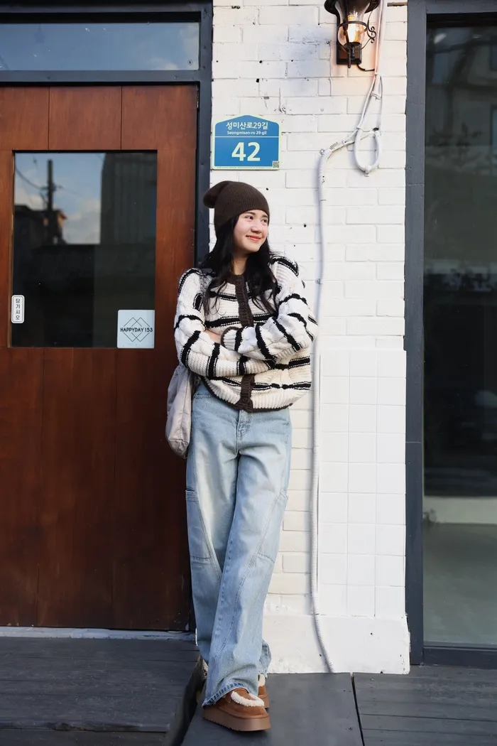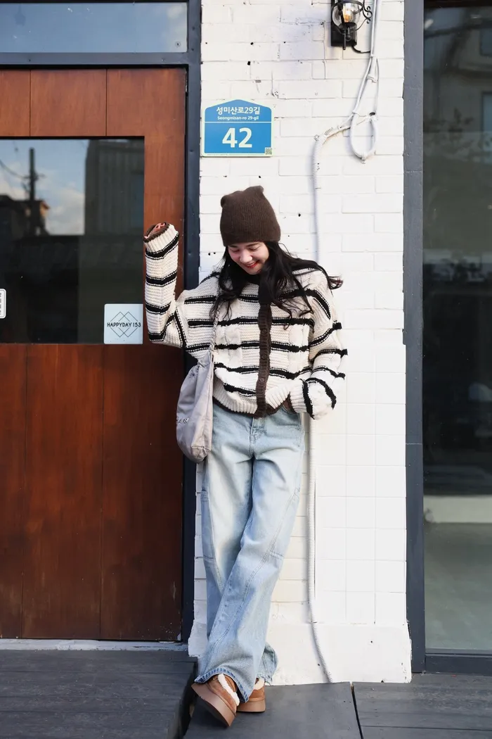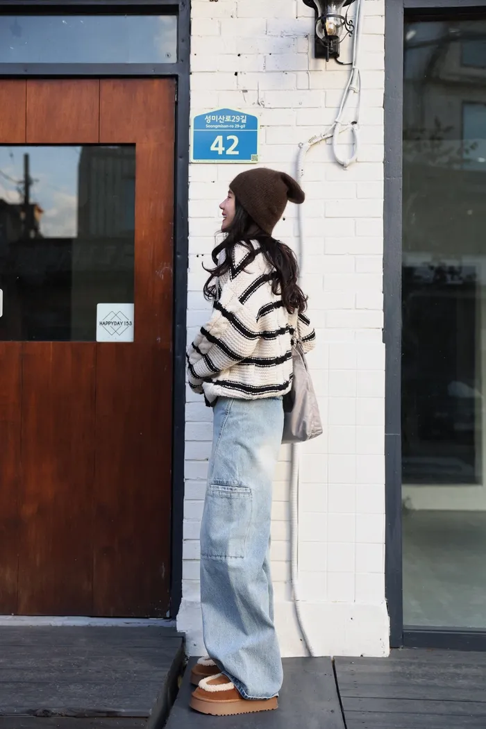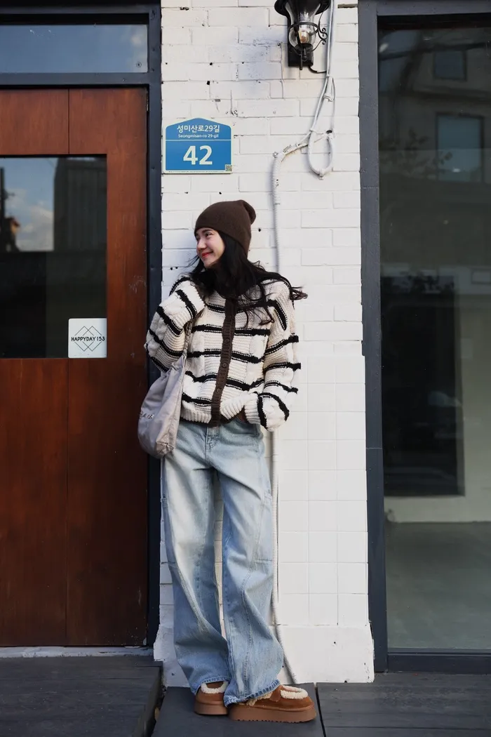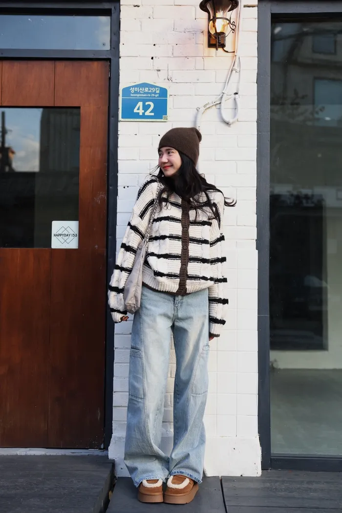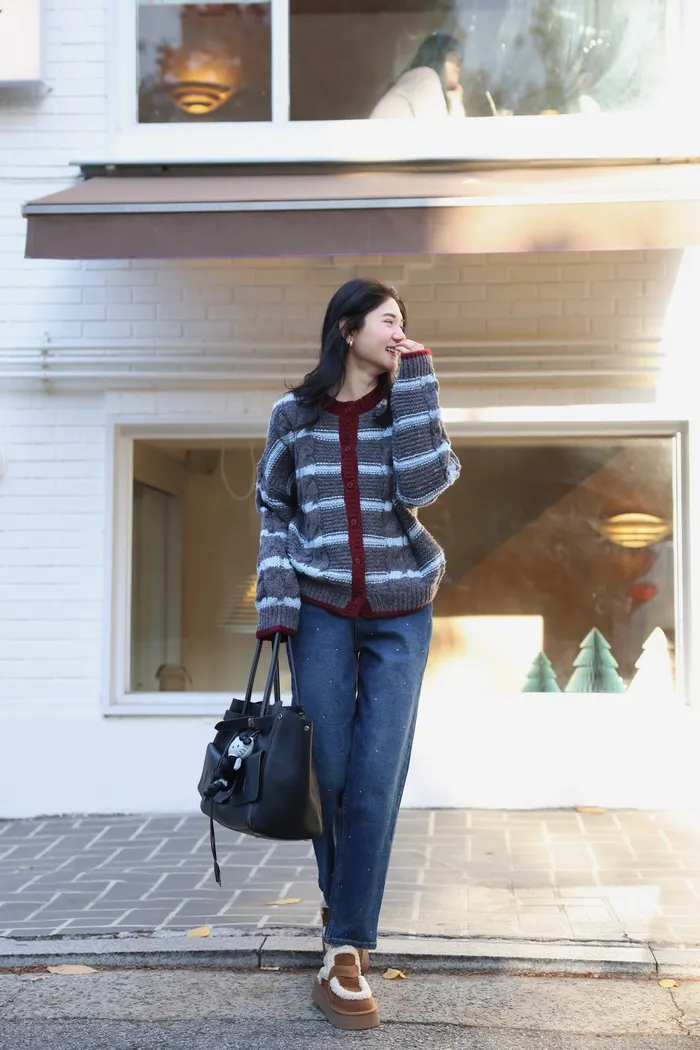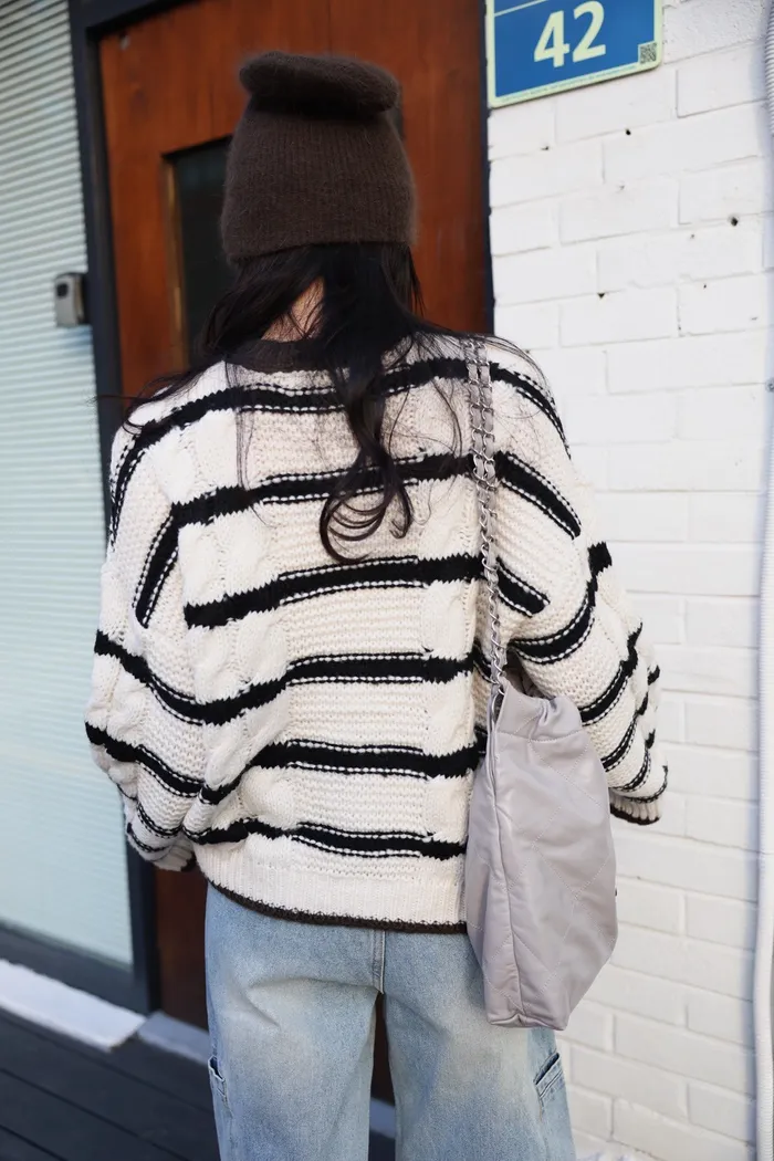NV18 自留麻花撞色條紋開襟外套(紅灰/咖白)