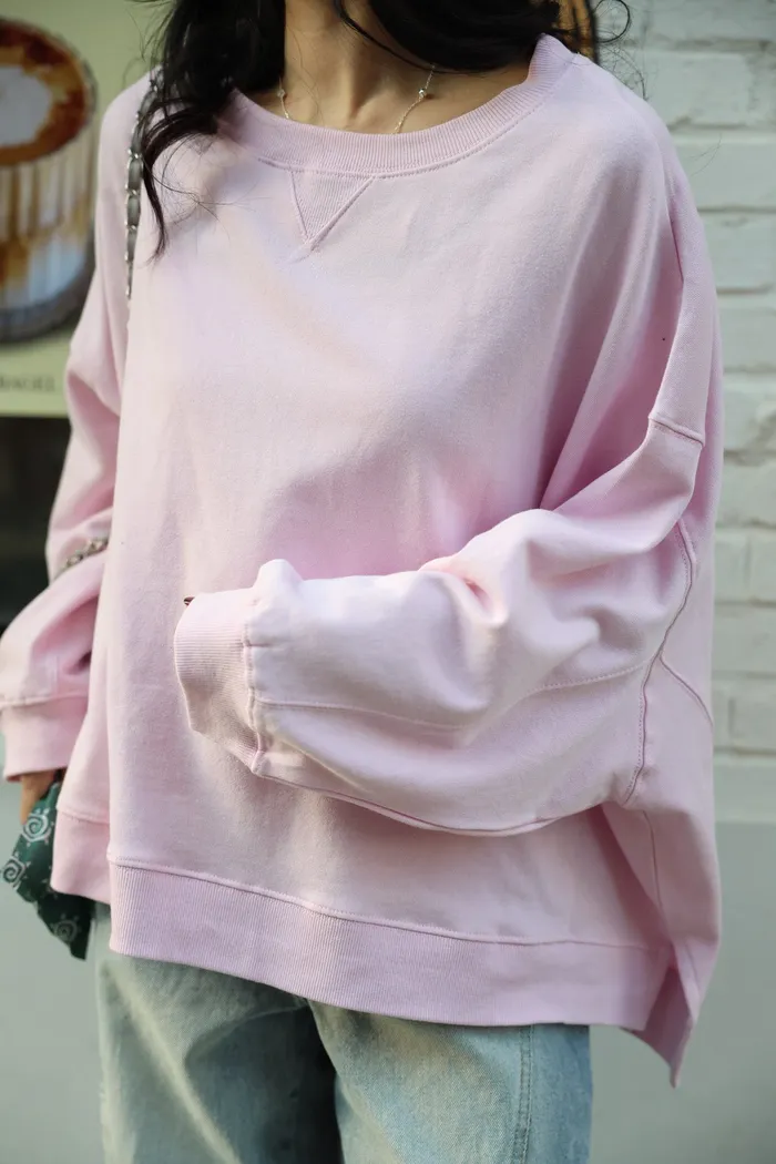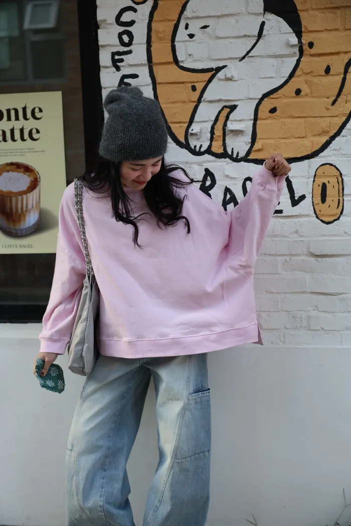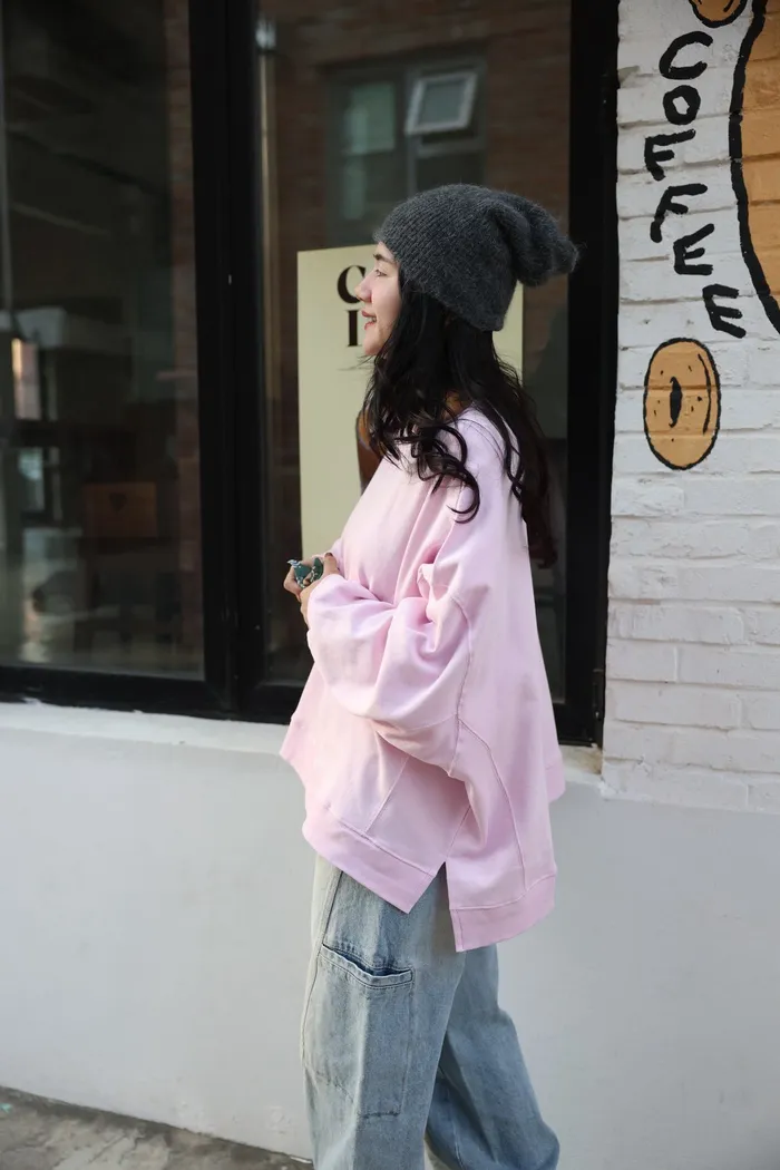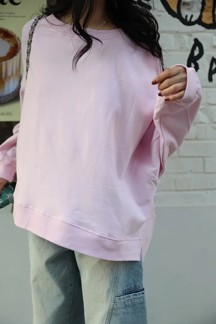 NV23 隨性感開衩寬版傘狀棉T(粉/灰/黑)