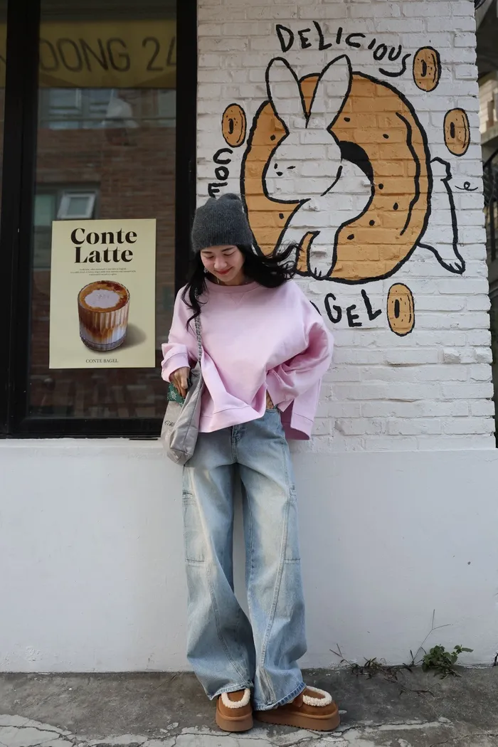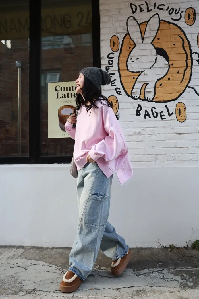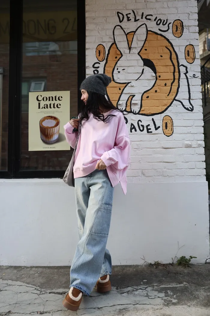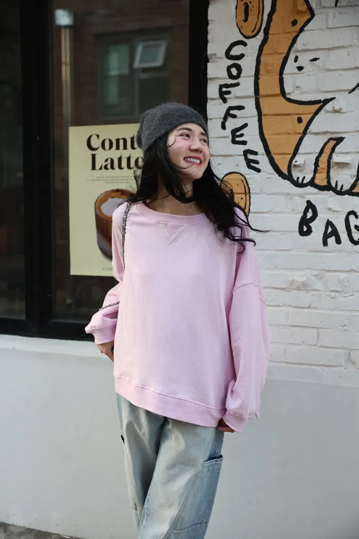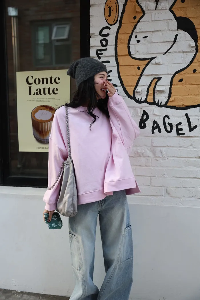 NV23 隨性感開衩寬版傘狀棉T(粉/灰/黑)