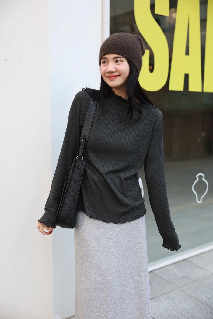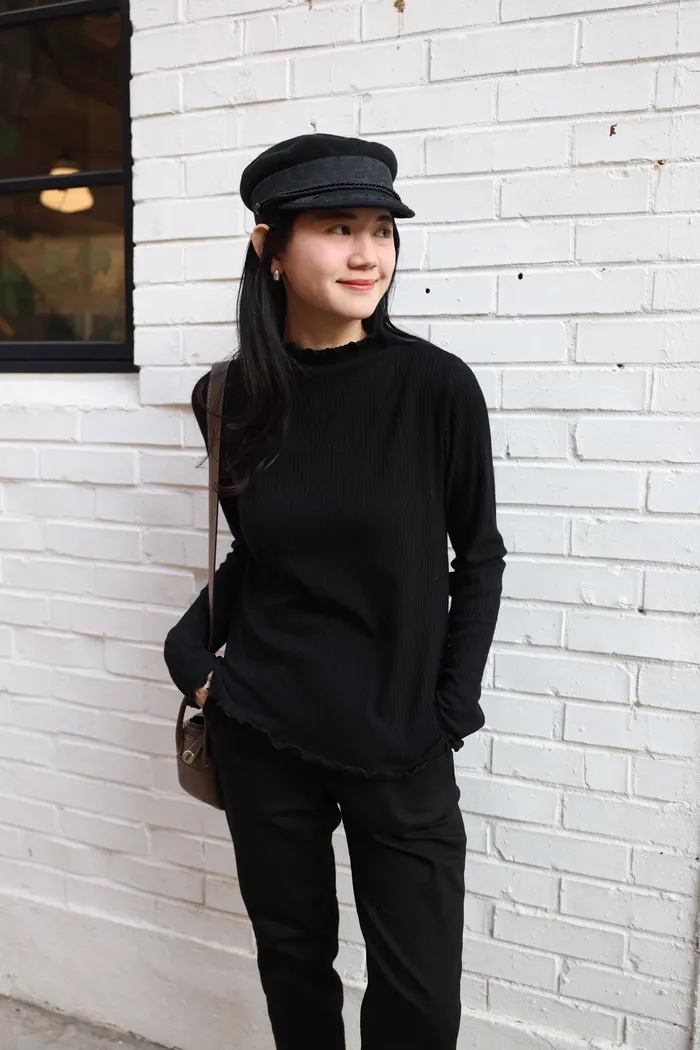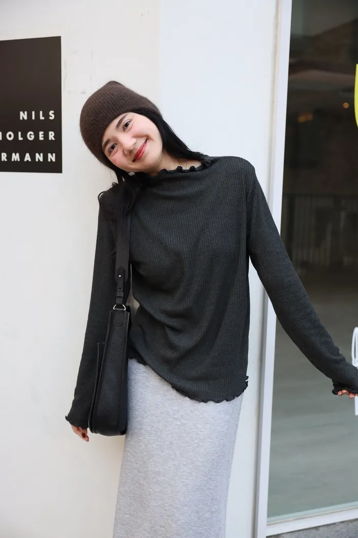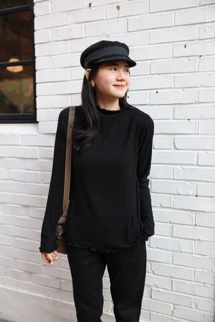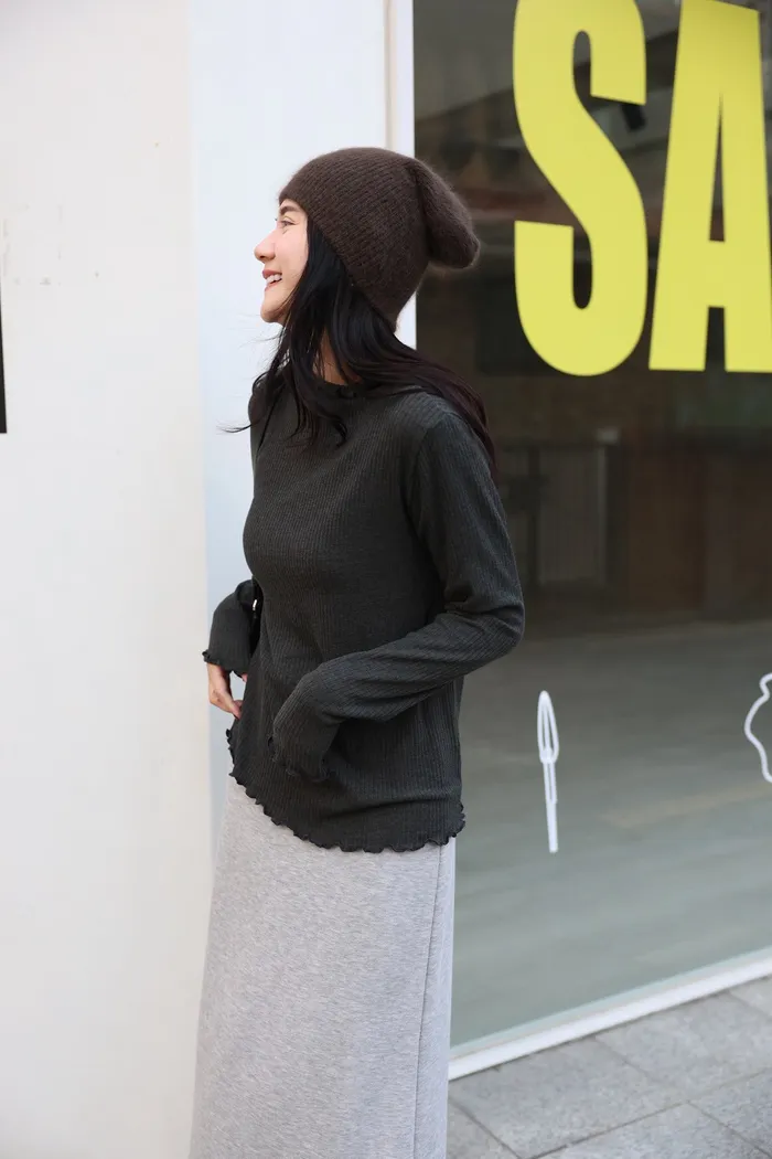 NV29 大推包色木耳邊內刷毛上衣(米白/灰/綠/黑)