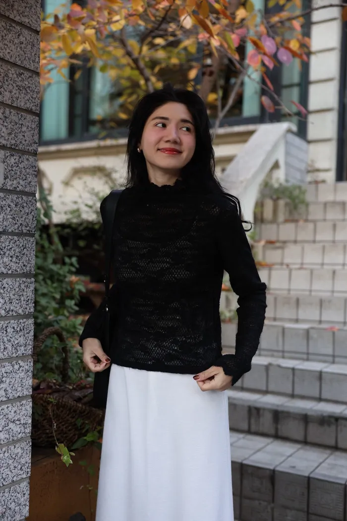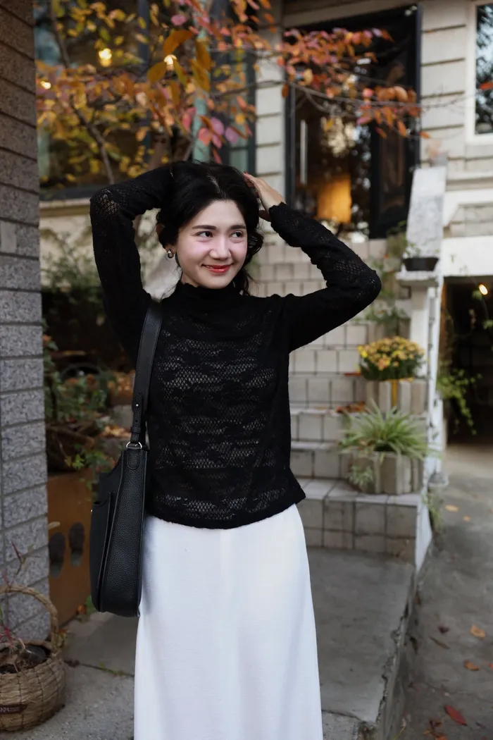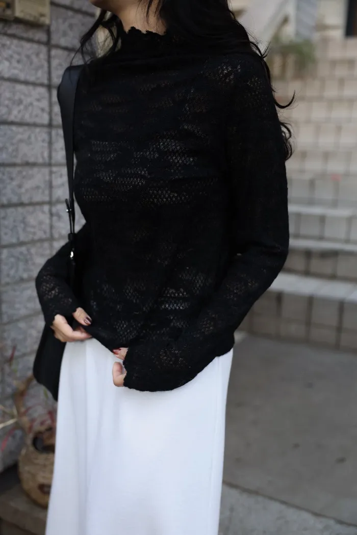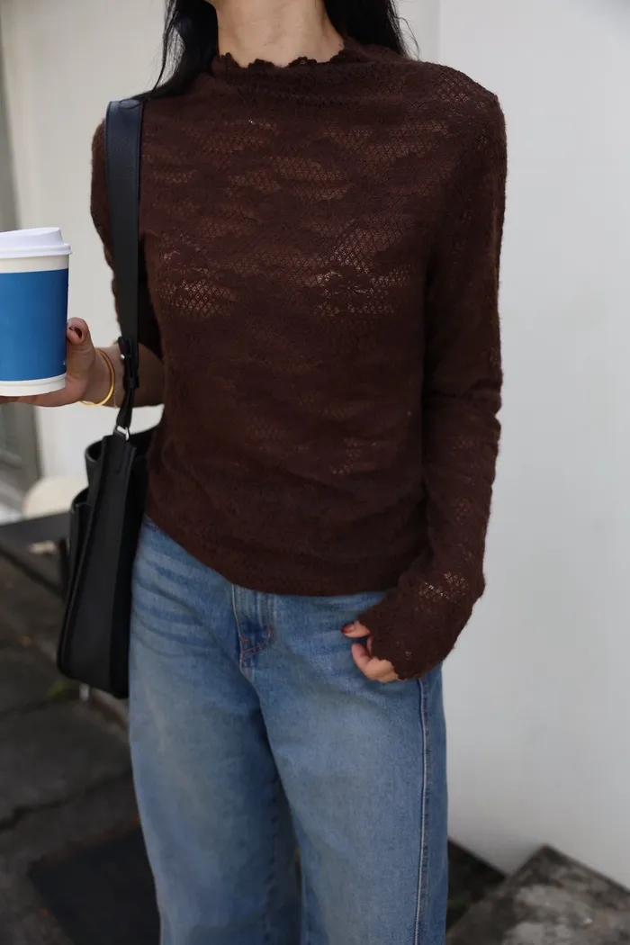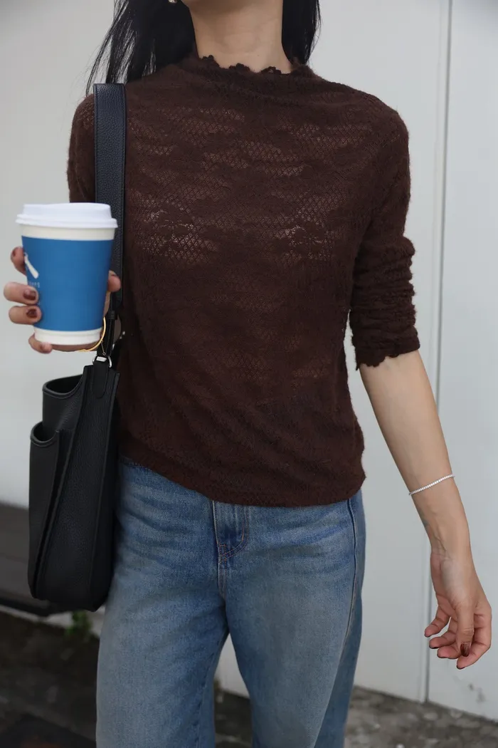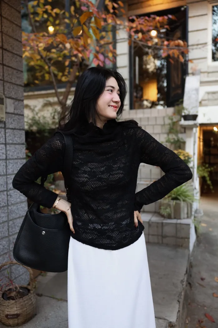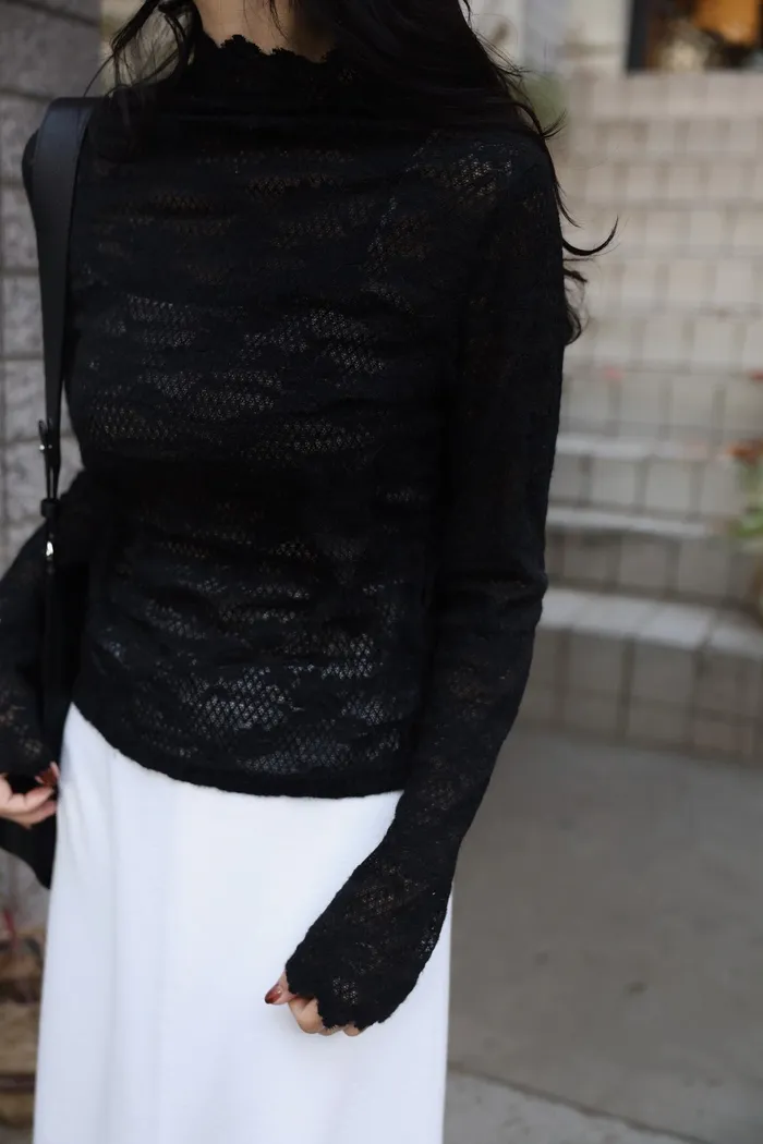 NV34 高級感極親膚蕾絲花邊領口上衣(白/黑/咖)