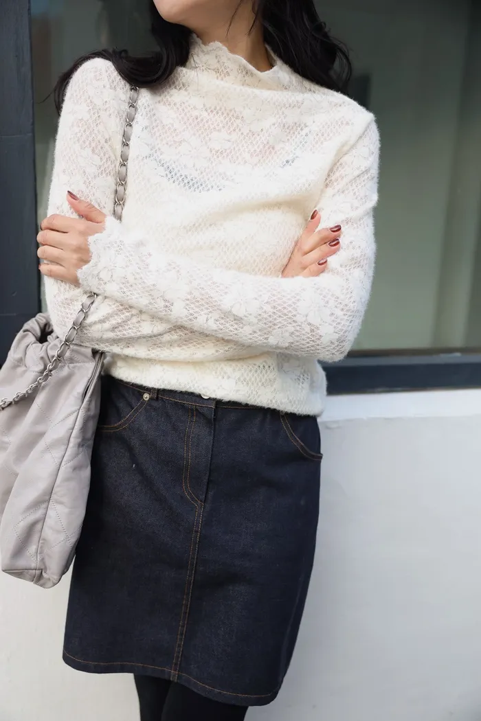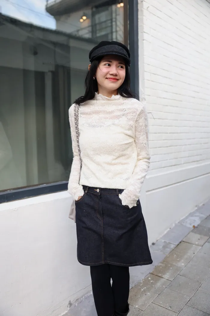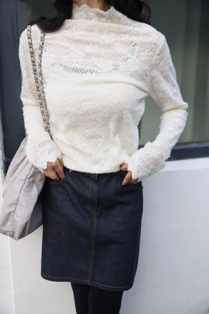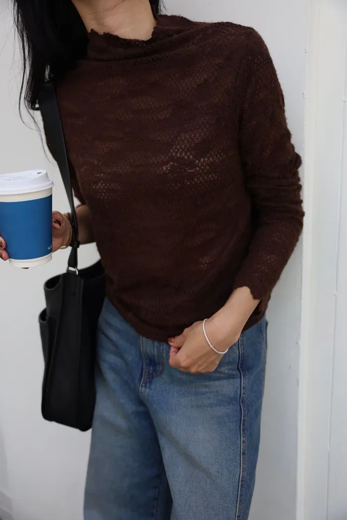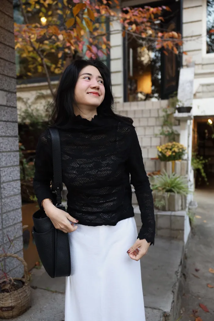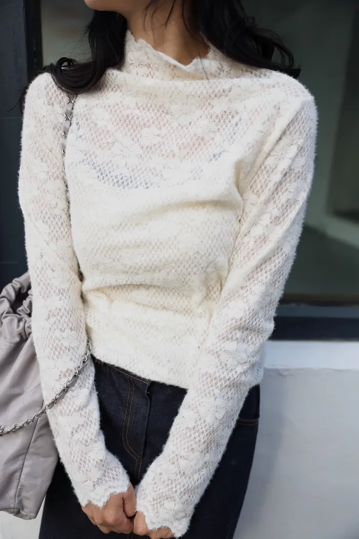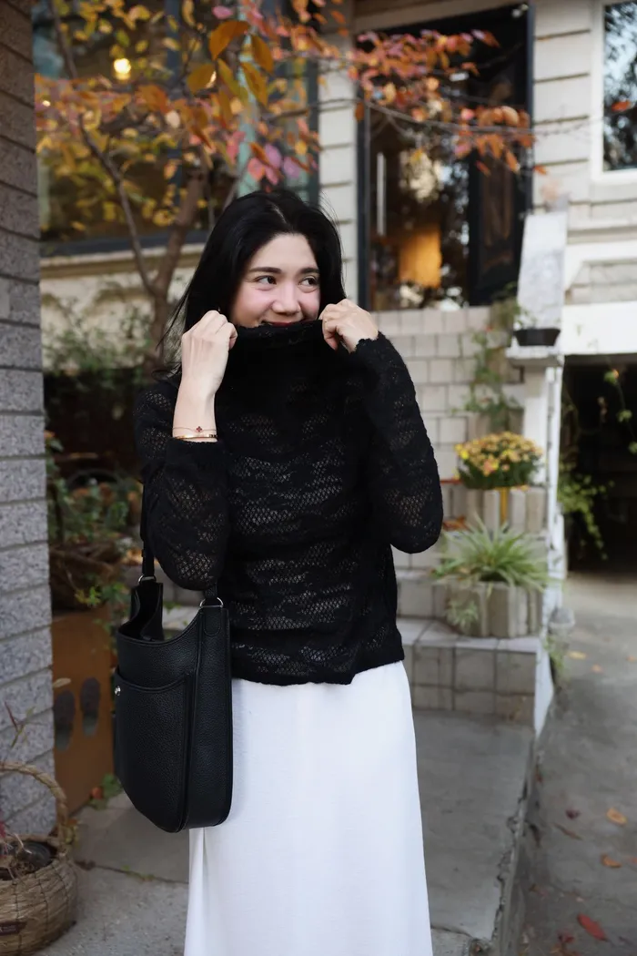 NV34 高級感極親膚蕾絲花邊領口上衣(白/黑/咖)