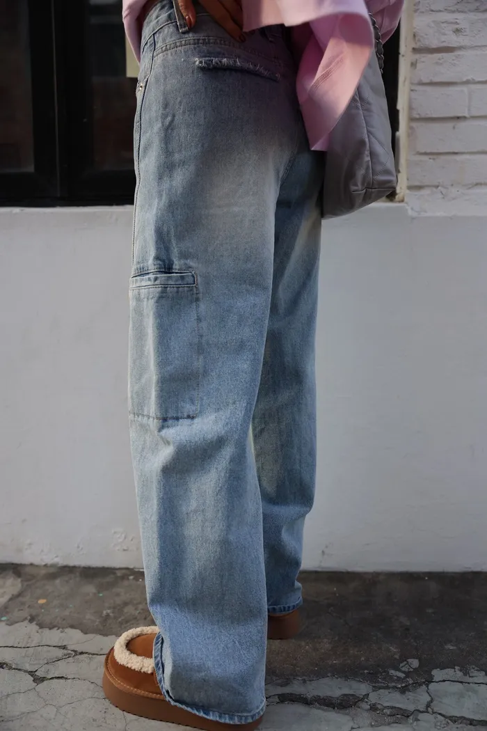 NV35 大大大推!!!超瘦牛仔設計大口袋寬褲(S/M)