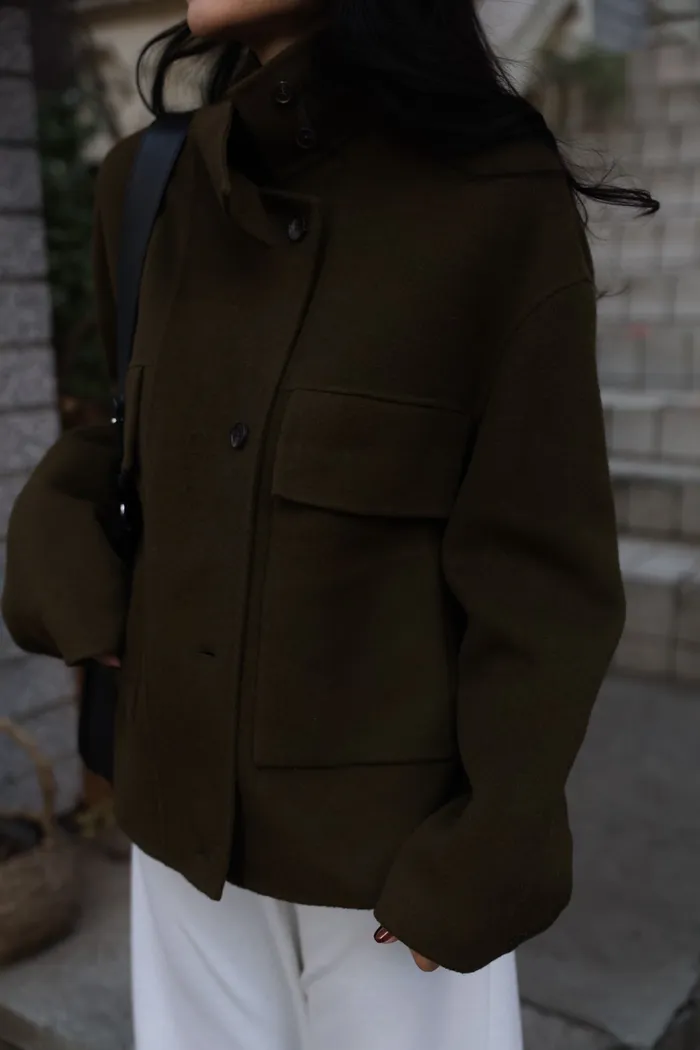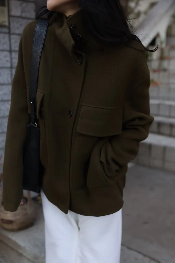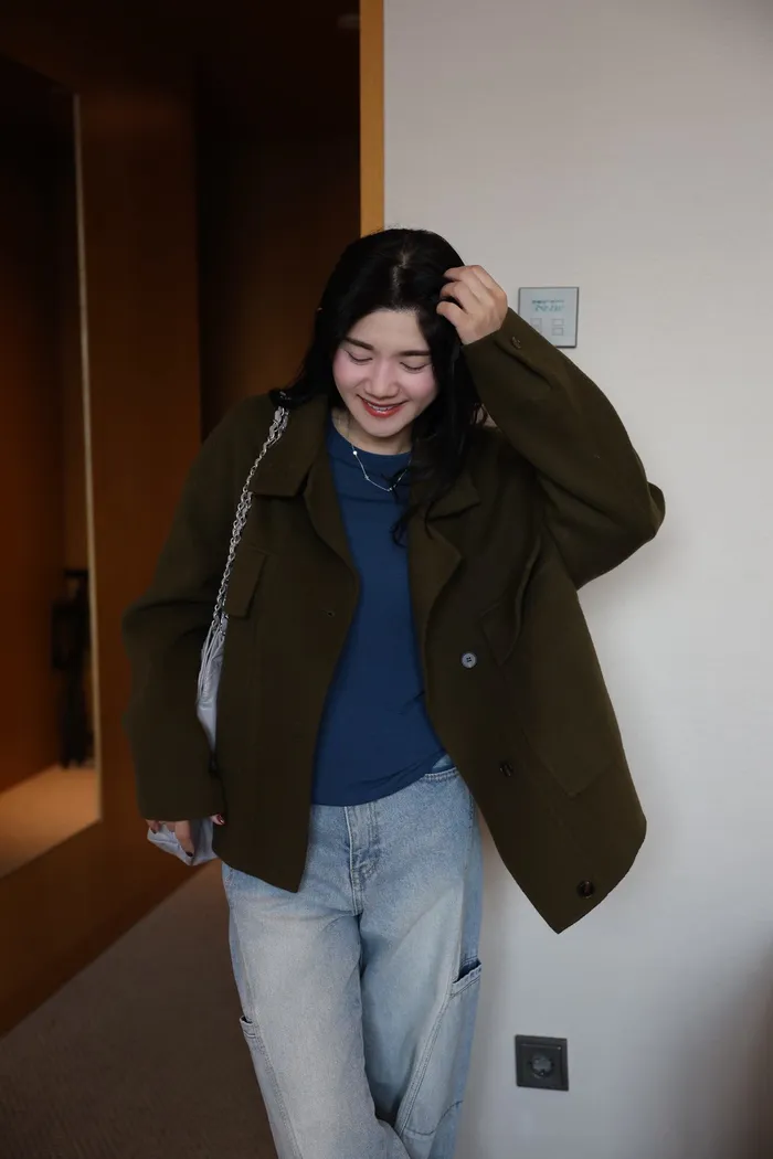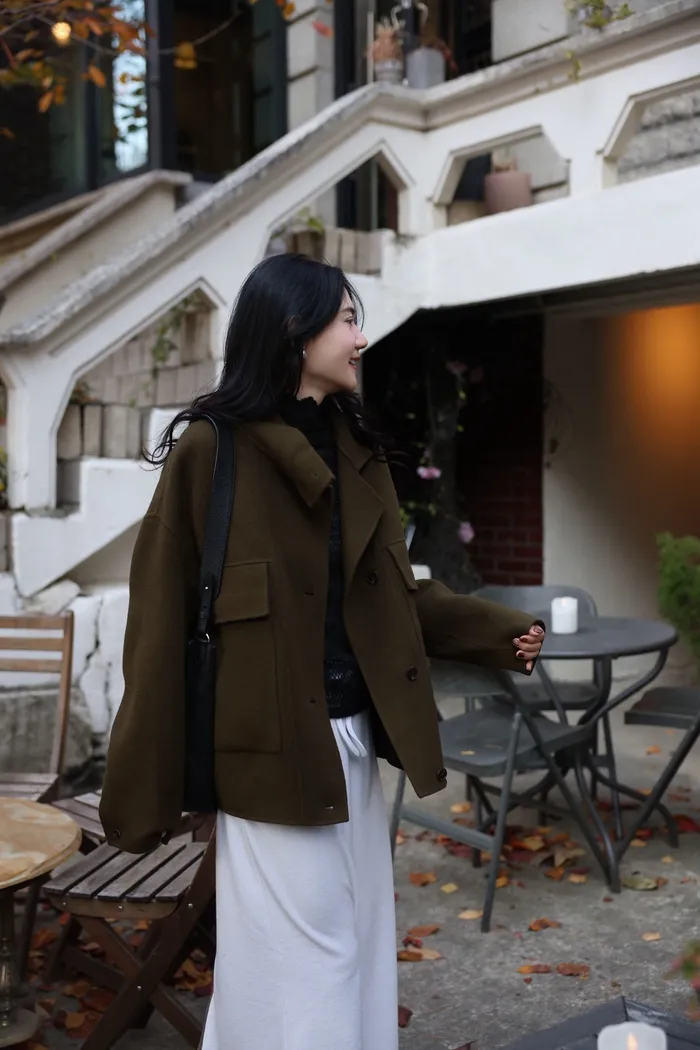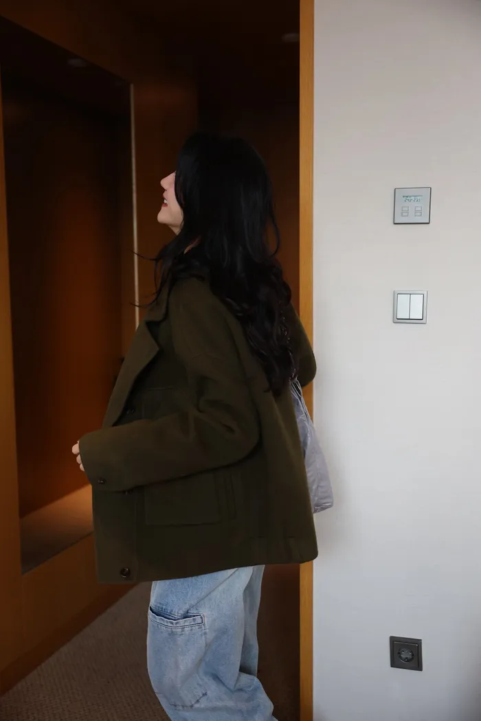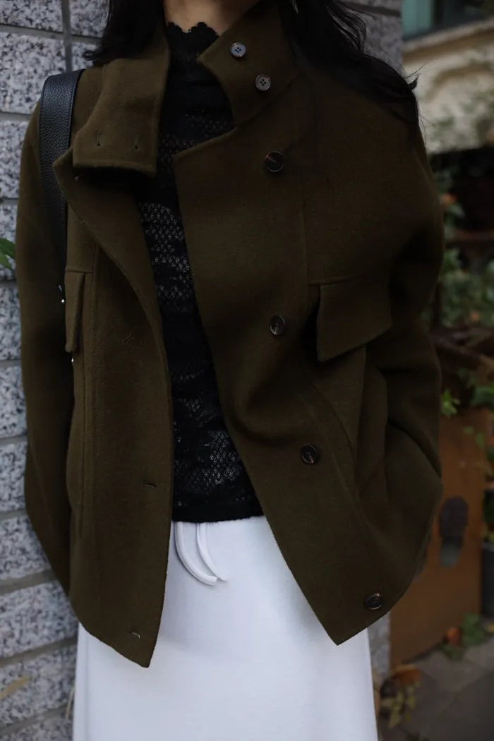 NV36 自訂款超輕量率性騎士風羊毛手工大衣 (深墨綠)
