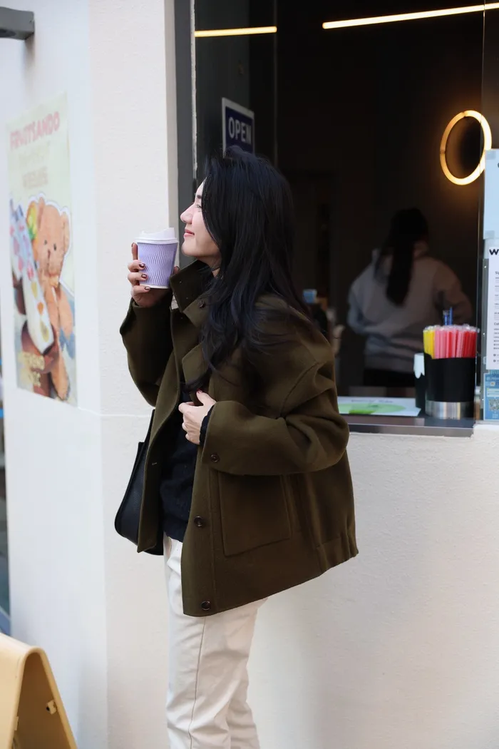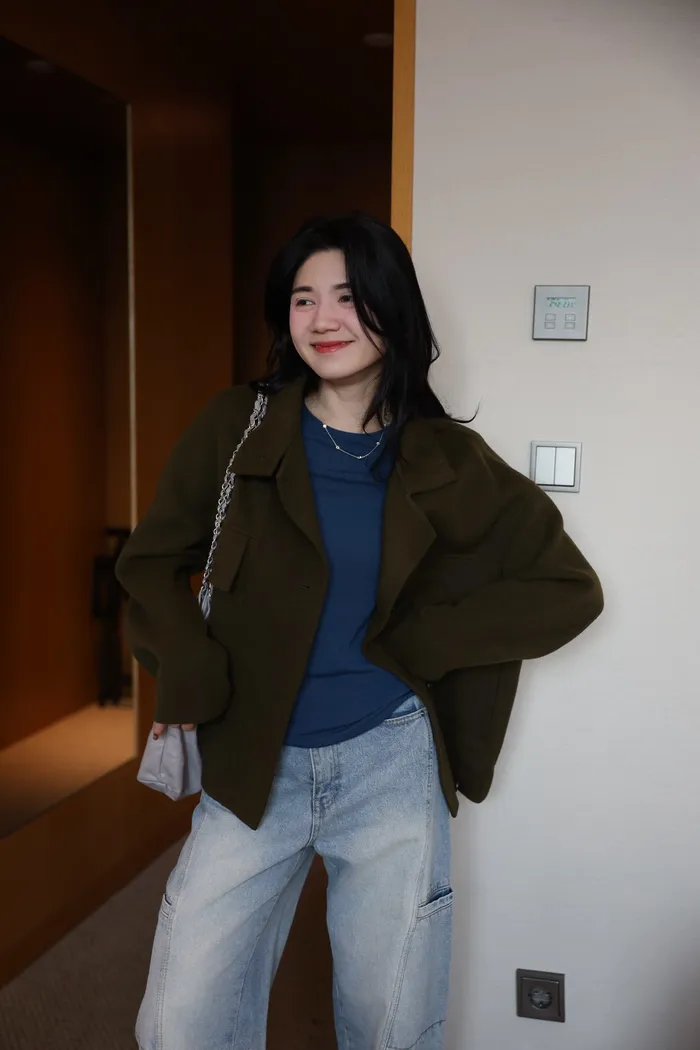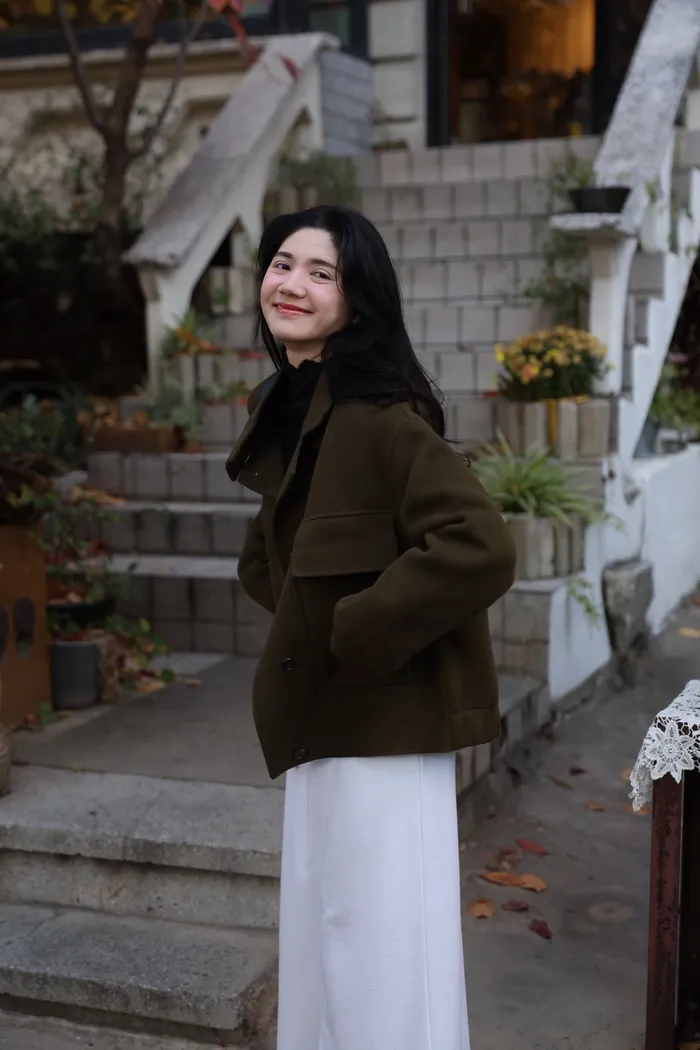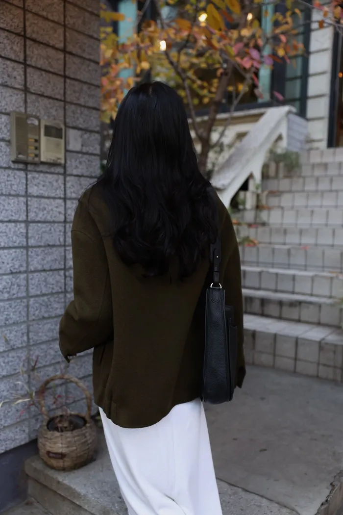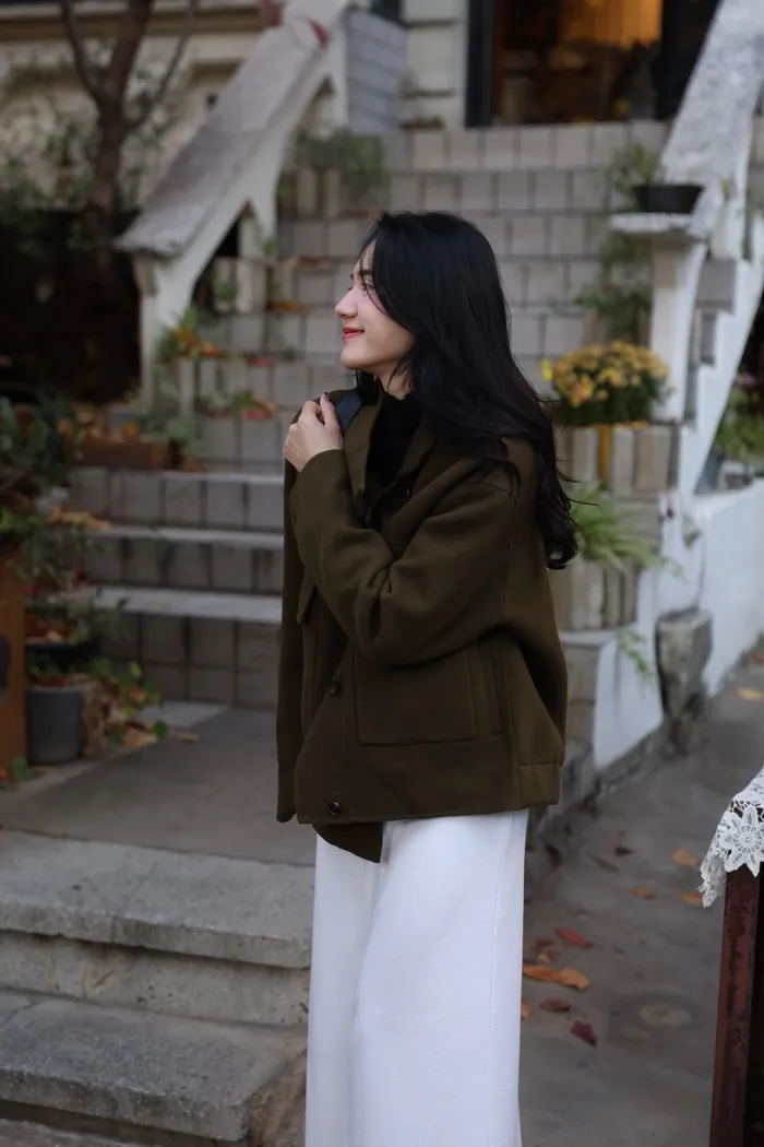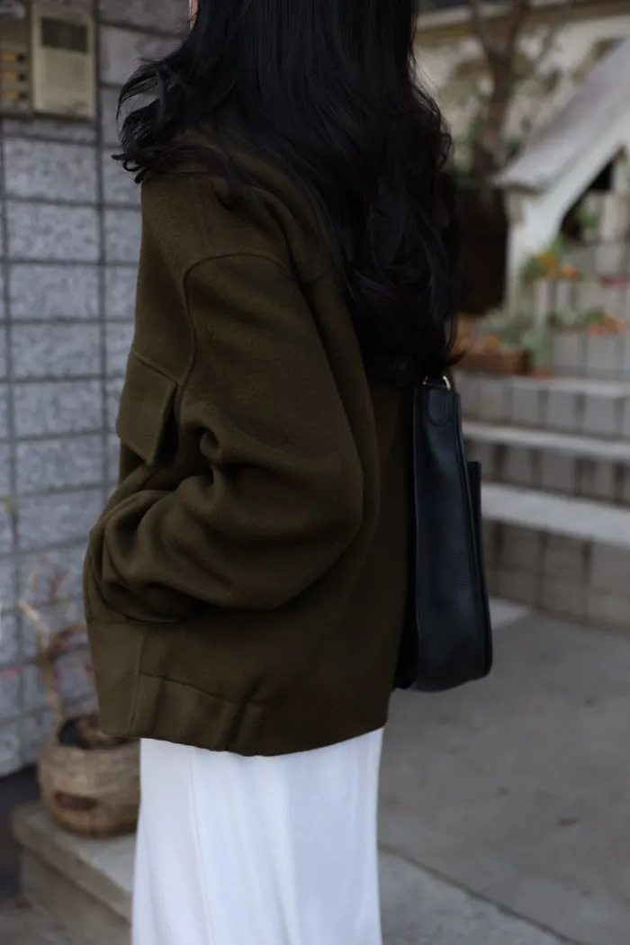 NV36 自訂款超輕量率性騎士風羊毛手工大衣 (深墨綠)