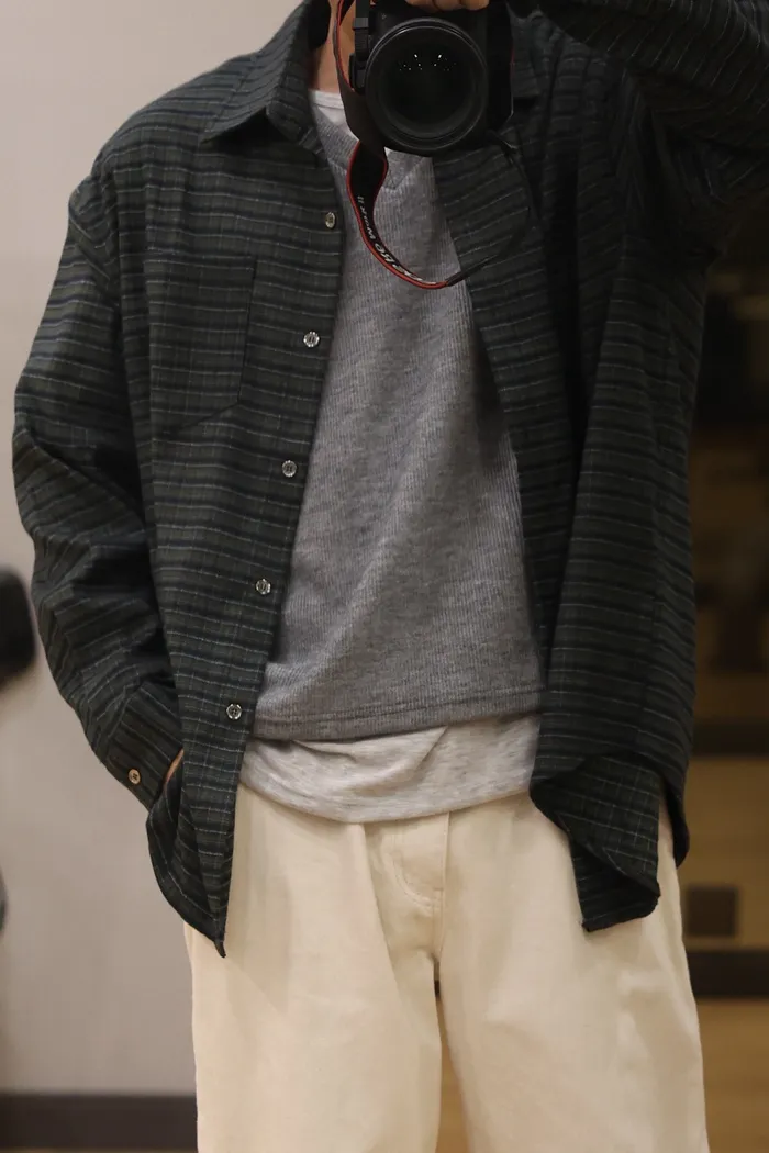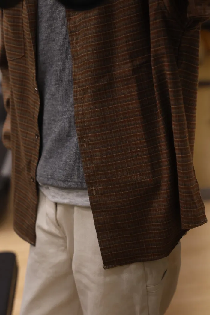 NV45 男裝!高質感復古襯衫(咖/綠)