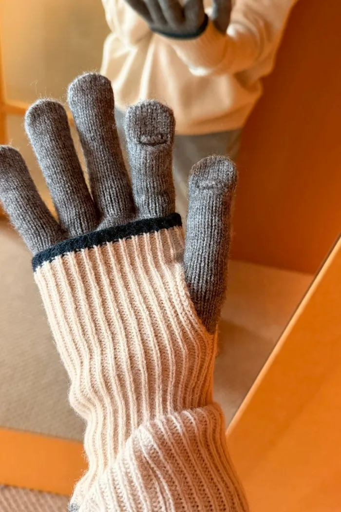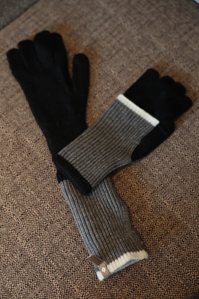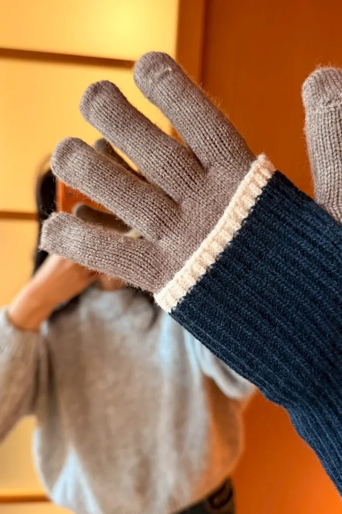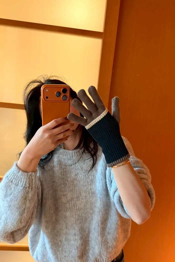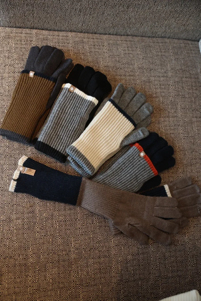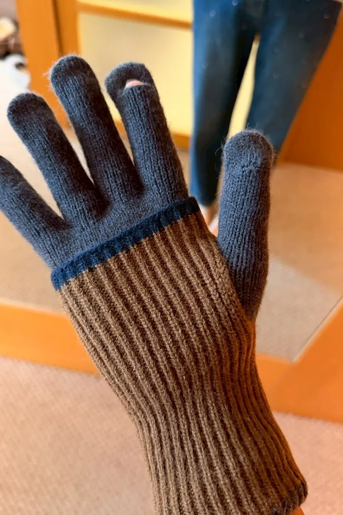 NV48 兩用羅紋撞色手套(黑灰/深灰駝/灰米白/深藍灰/駝深藍)