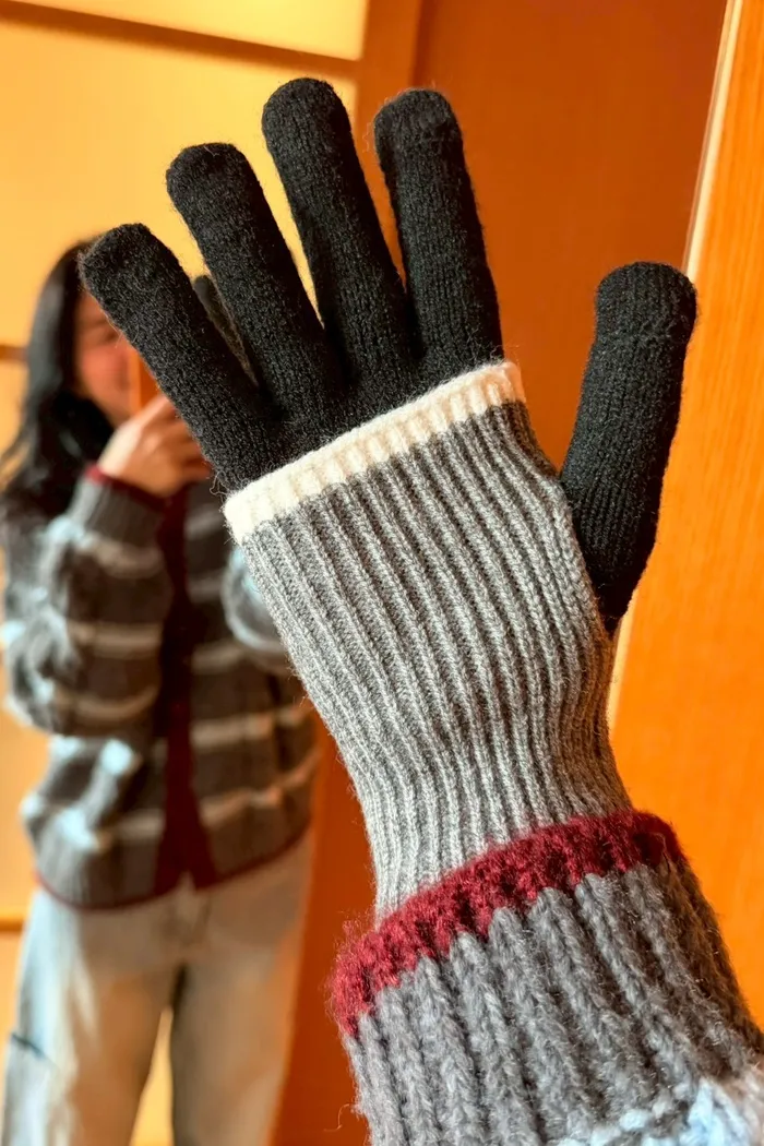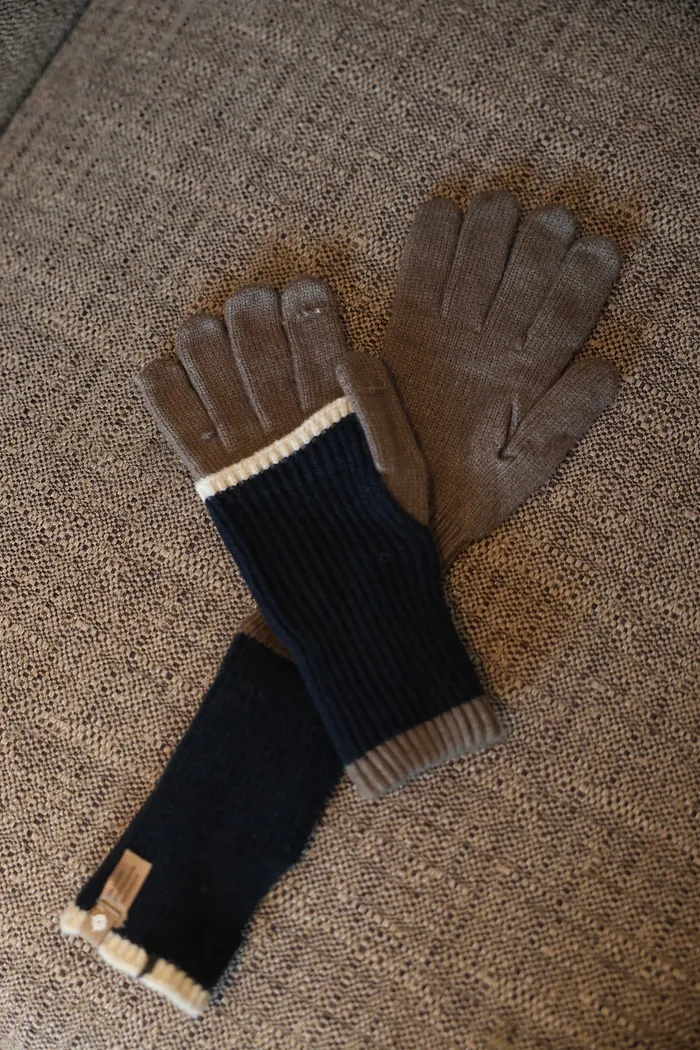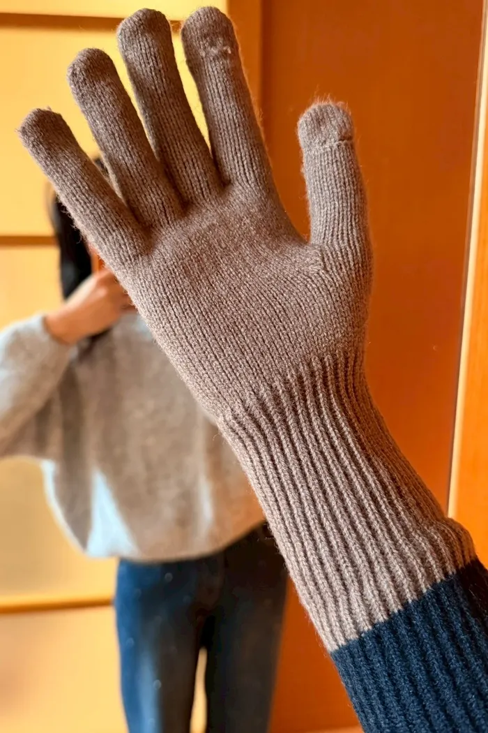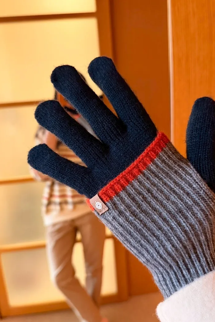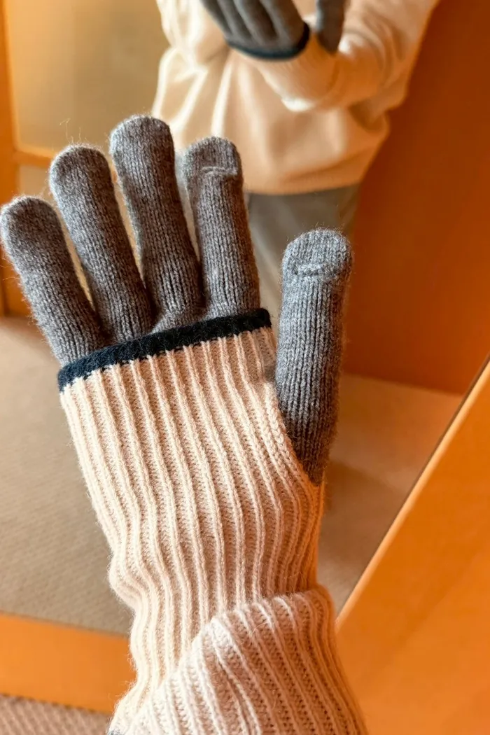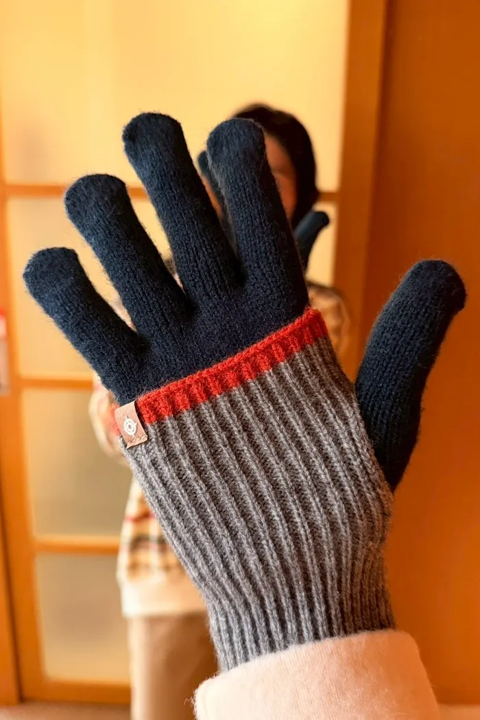NV48 兩用羅紋撞色手套(黑灰/深灰駝/灰米白/深藍灰/駝深藍)