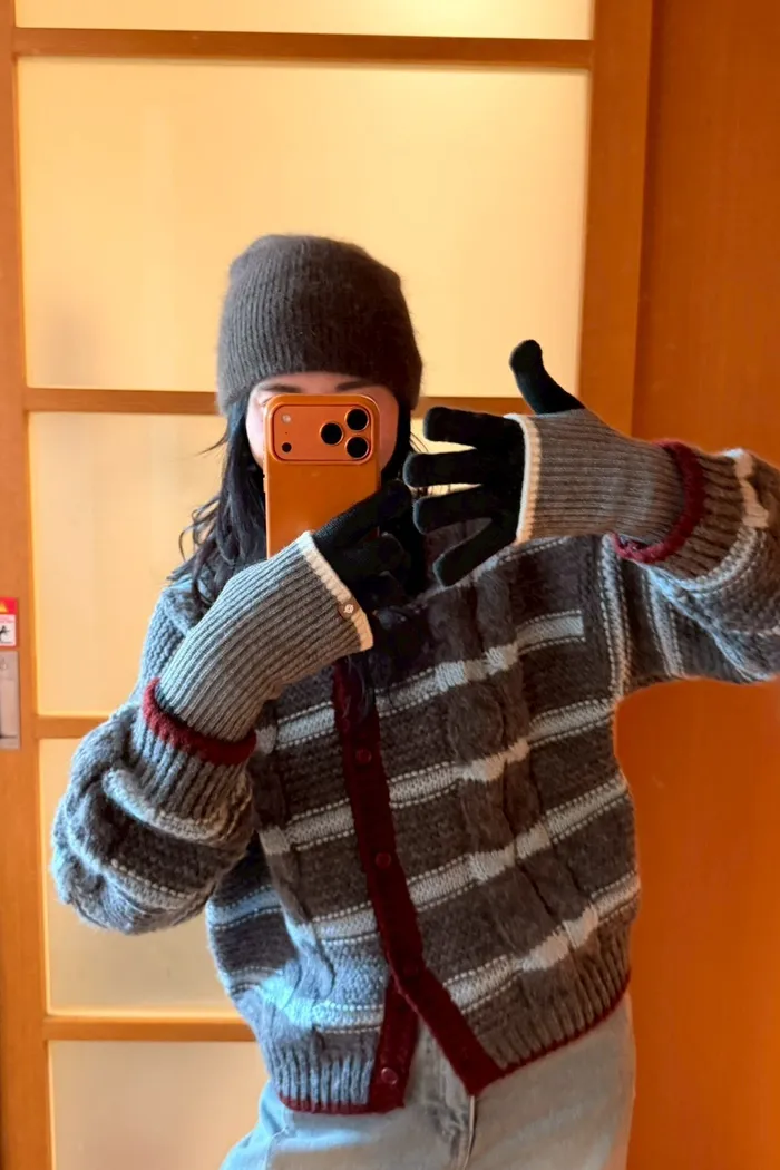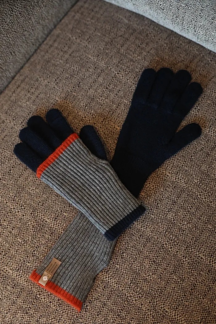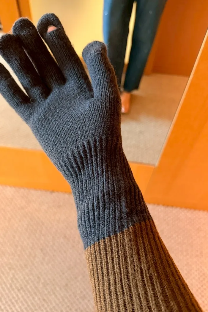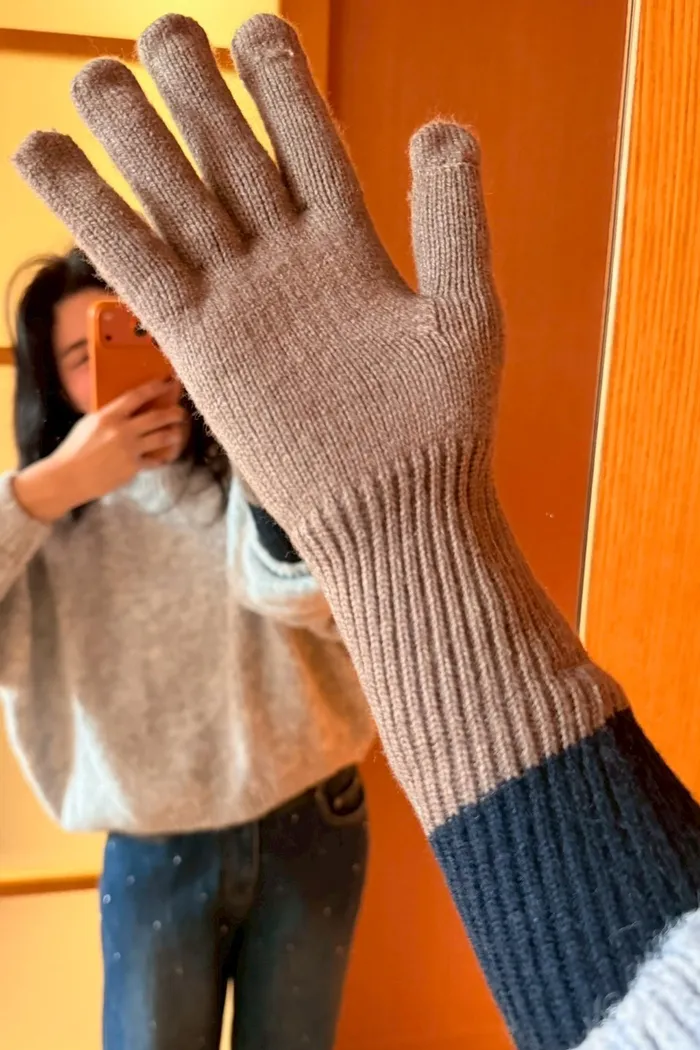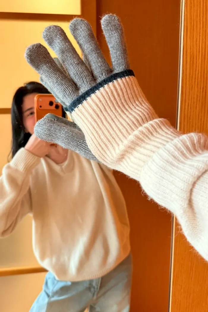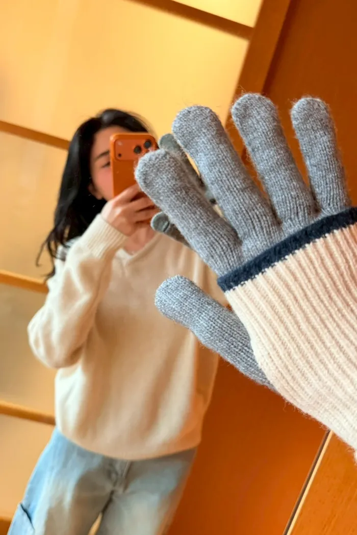 NV48 兩用羅紋撞色手套(黑灰/深灰駝/灰米白/深藍灰/駝深藍)