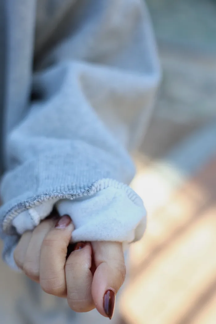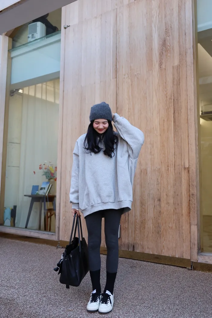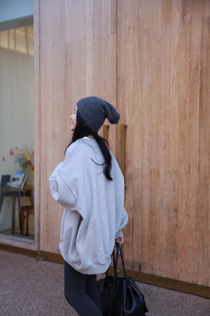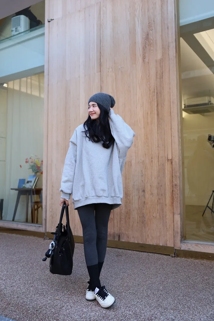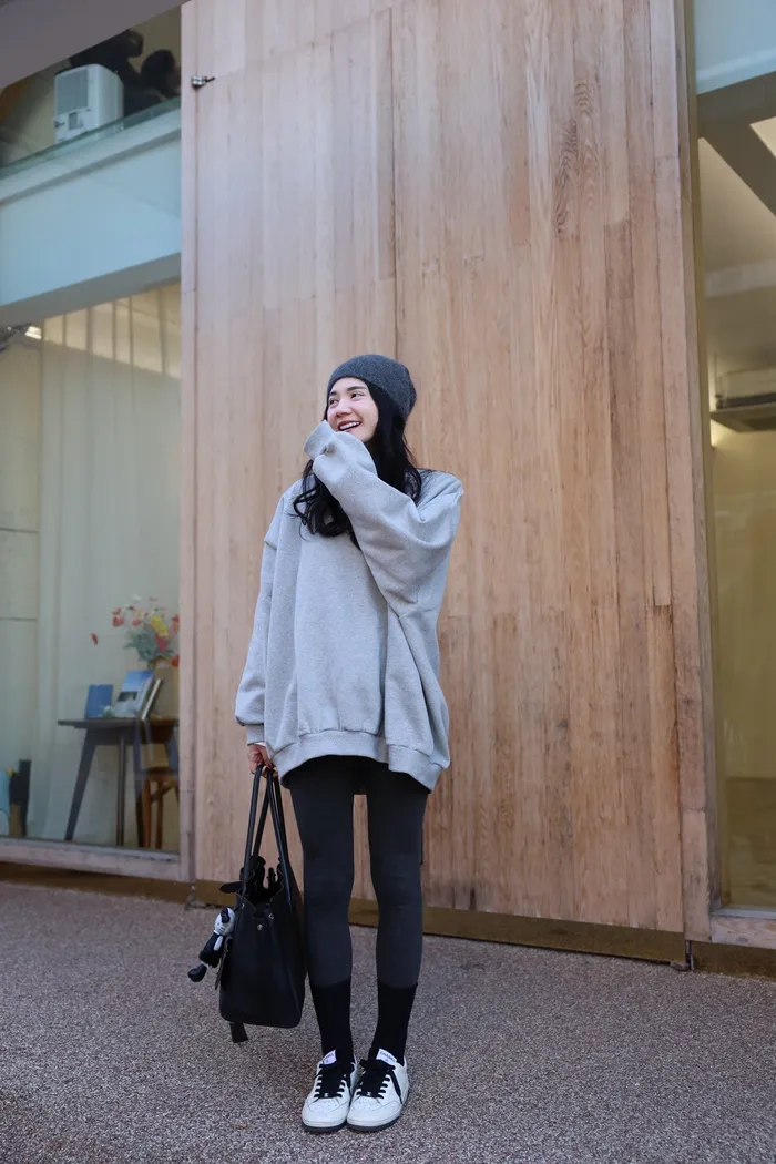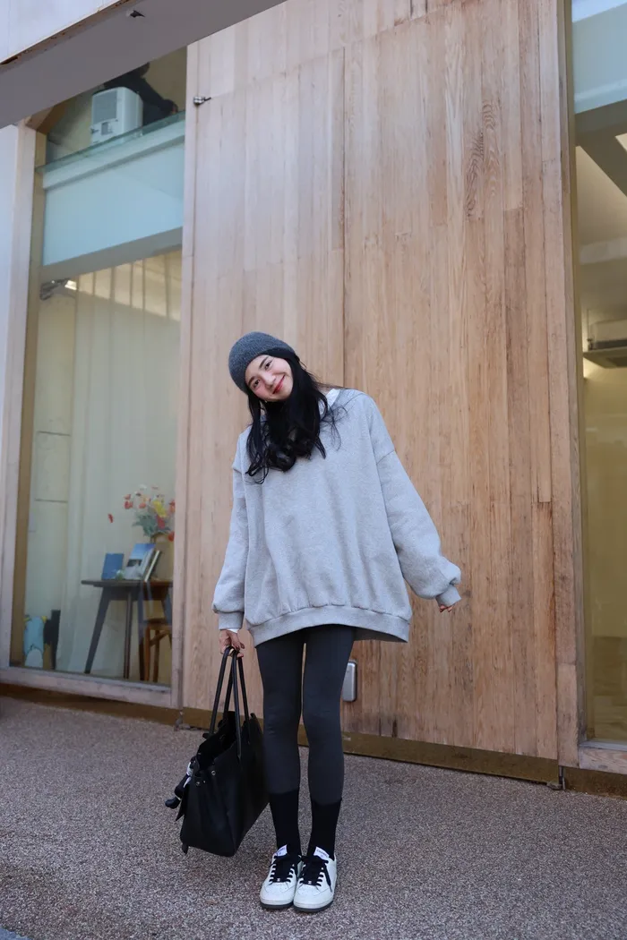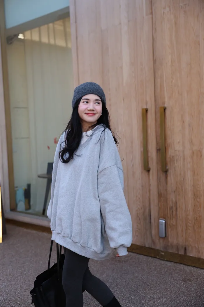 NV55 慵懶感淺灰V領內刷毛長版大學T