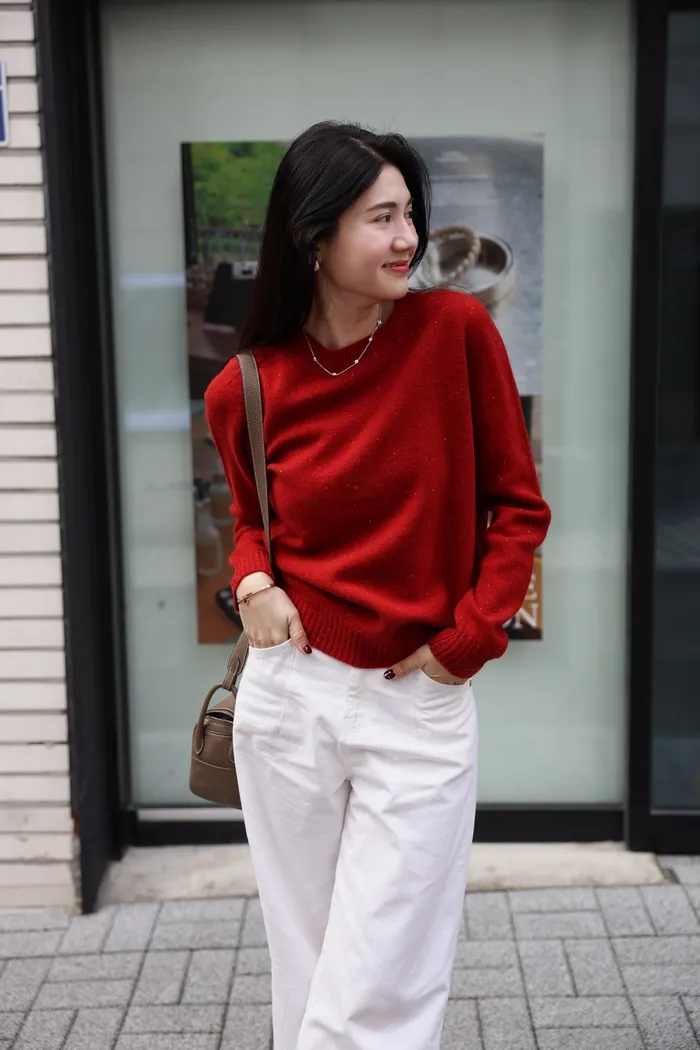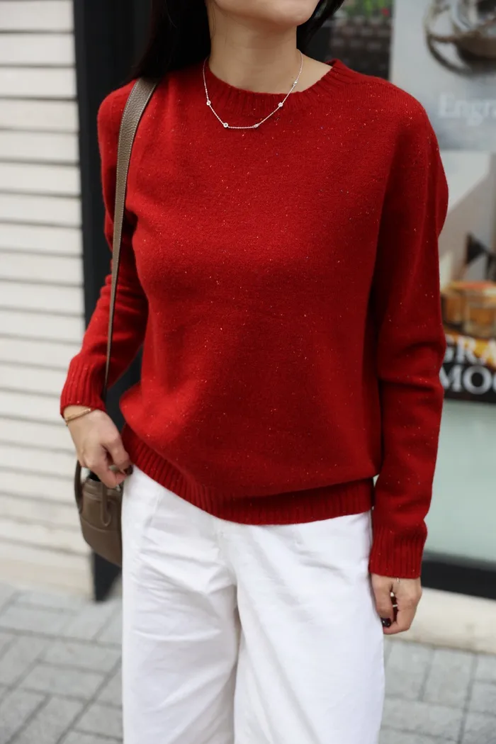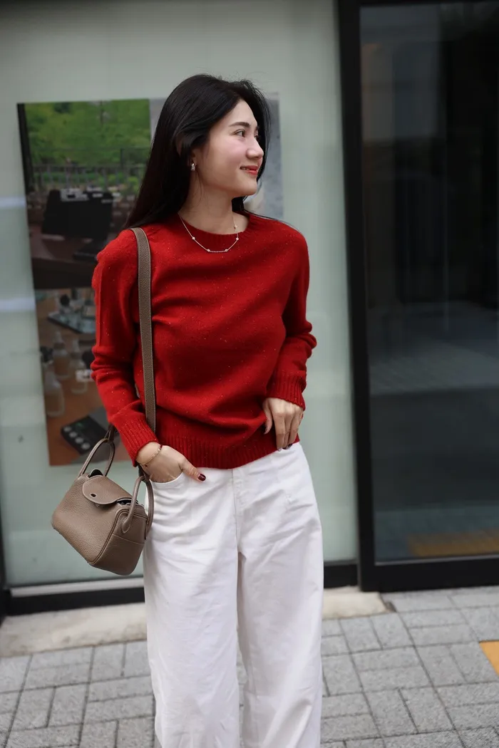 Ot13 彩色點點高級美麗諾羊毛衣(咖/米白/紅/灰)