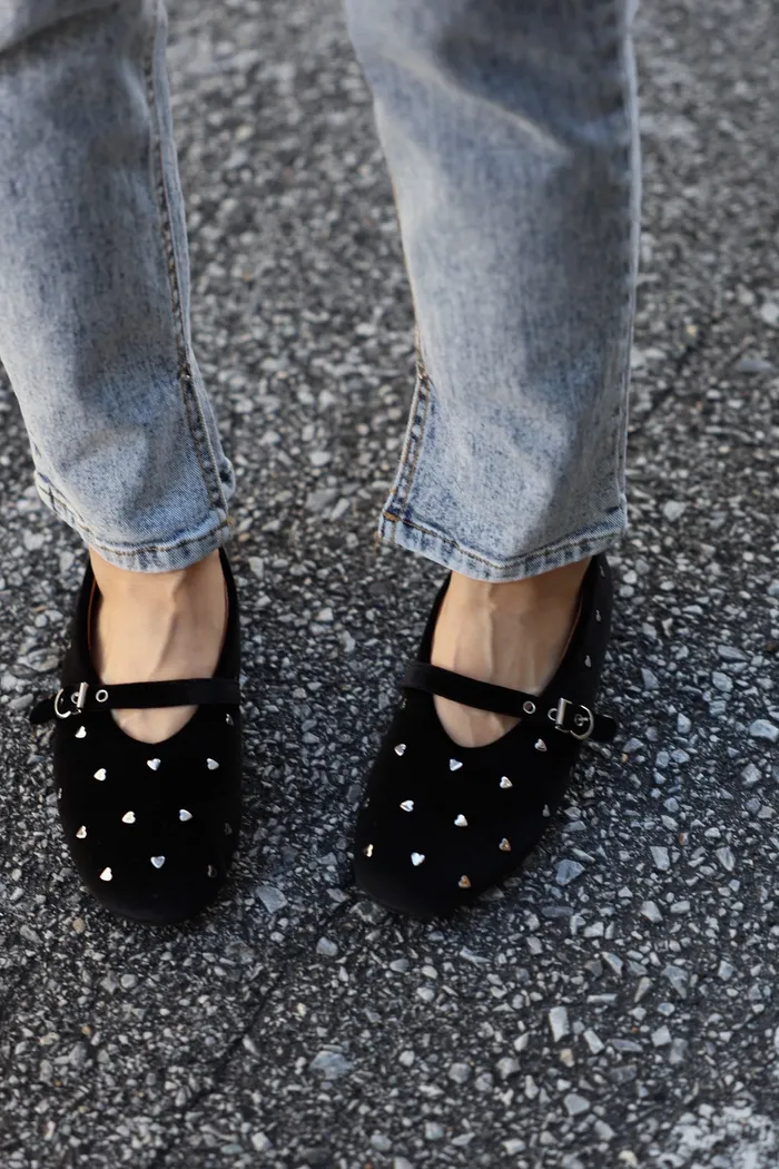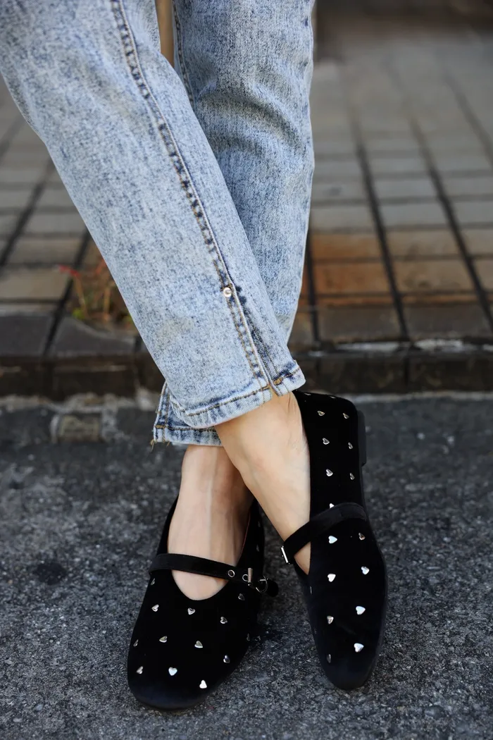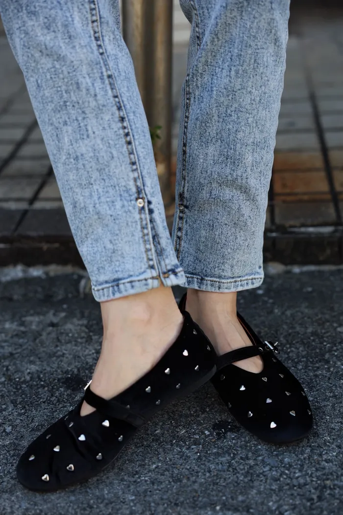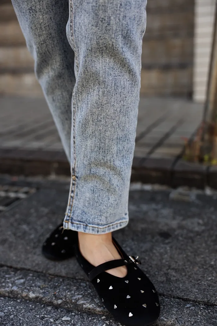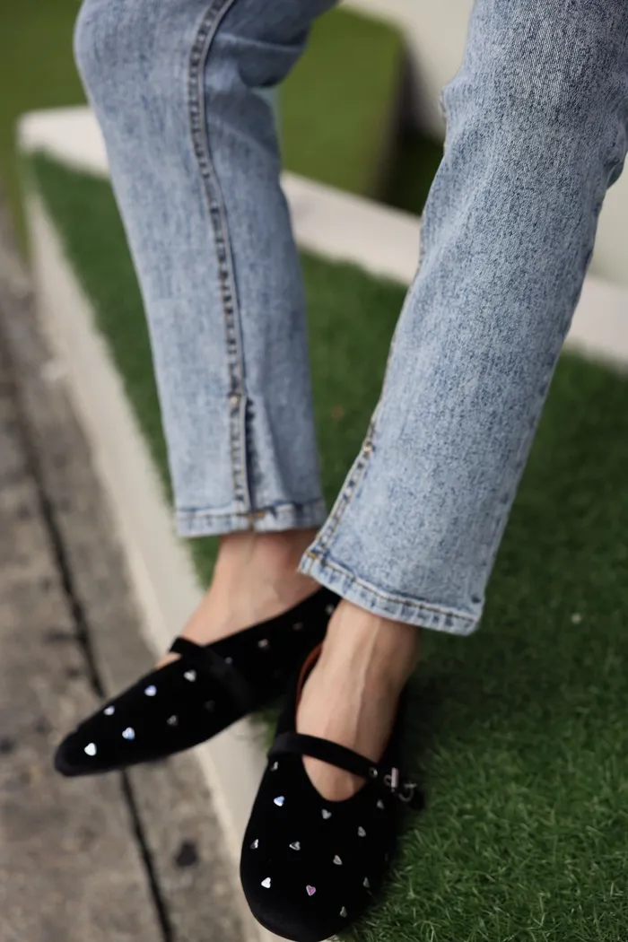 SOK57 保證不咬腳超軟絨布銀釦愛心娃娃鞋(23-25)